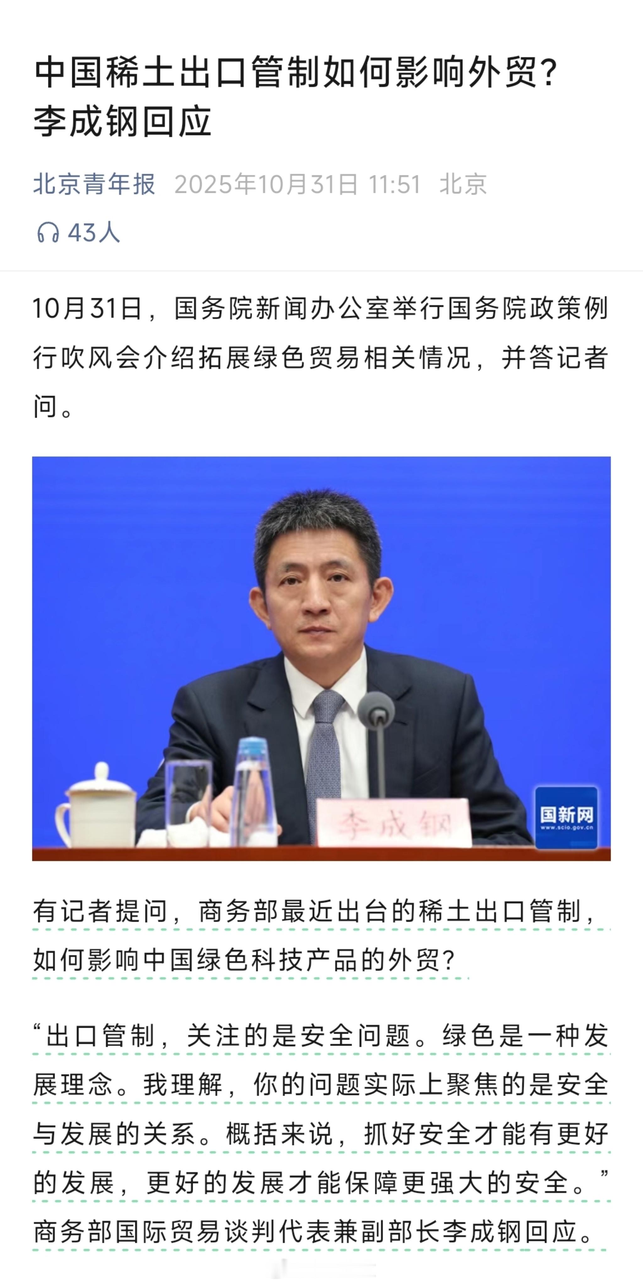 李成钢回应稀土管制与绿色发展 西方不是说稀土加工有污染吗,怎么真管制搞绿色发展了他们又不开心了?