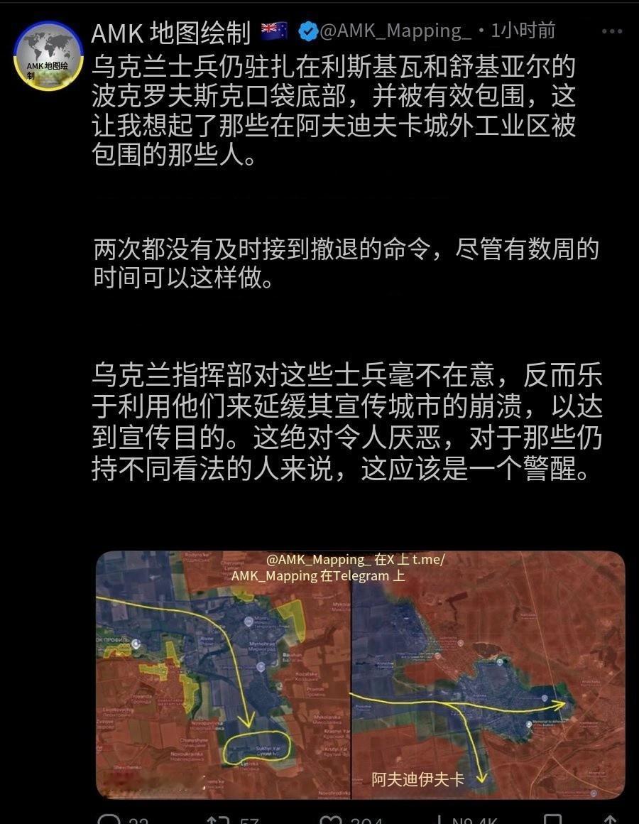 距离关闭波克罗夫斯克聚集区的包围圈只剩3公里了。不要为了政治和公众舆论白白牺牲士
