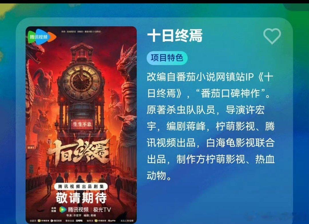 网传《十日终焉》男主是肖战导演:许宏宇编剧:蒋峰无限量啊好期待[打call][打