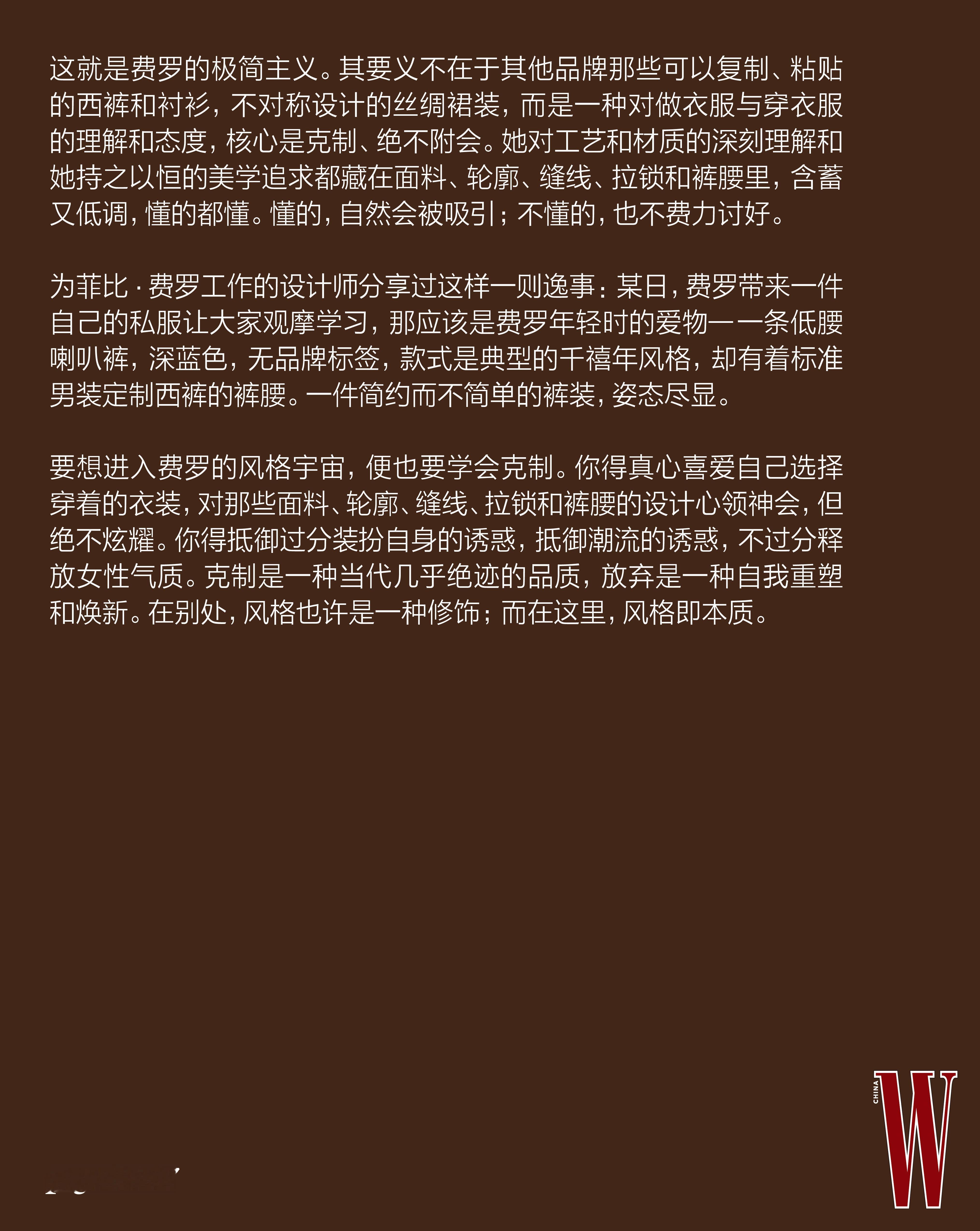 中文版 W Magazine 本期 The Icon Issue 的一组新片 ,很惊喜哦 !独家拿到了 Phoebe Philo 的专题制作 ,这也是国内媒体的独一份 ,以 Phoebe Philo Collection C 中的 9 件作品为视角 ,打开属于 Phoebe Philo 极简 、克制的创作思路与探讨。另外从皮尔卡丹 、Hermes Archive 、Armani 五十周年 、Loewe Puzzle 、LV by Nicolas 十周年 、Mugler Couture 专题 、Maison Margiela Artisanal 系列 、Loewe by Jonathan Anderson 十周年 … 包括一众设计师的采访专题 ,中文版 W Magazine 不得不说在时装性这块是下了大功夫的 ,有深度又有专业性 ,光这份态度也足矣傲视群雄了 ,做得是真不错 ![赞]