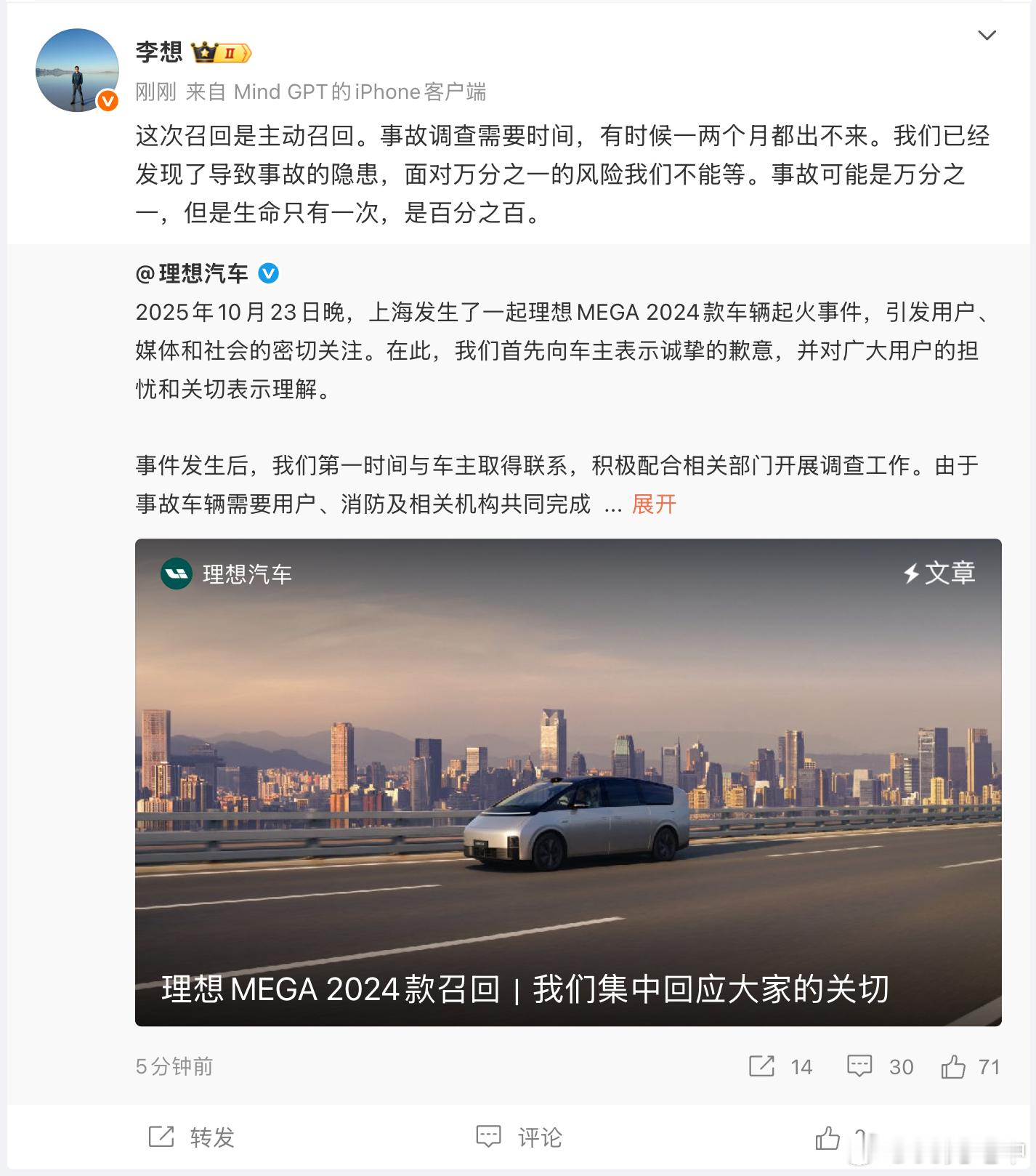 关于之前的事故,理想也公布了一些信息。-在车辆起火约4个多小时前,我们的云端预