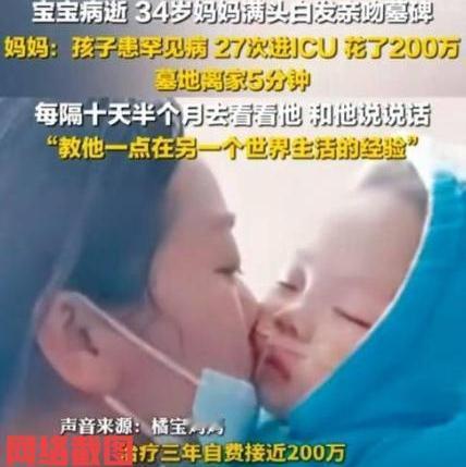河南南阳有女子。 为了自己宝宝的身体病殃,不惜一切代价,在前后身体大病期间,女子作为妈妈付出了常人难以忍耐的心疼与身体无尽的疲倦,无数次的抢救还是未能挽留宝宝的生命,才三十多岁她的头发也变成灰白。 她被一名网友称之为“超人妈妈”,她为自己宝宝付出的一切代价里,看到为母则刚的榜样,她把宝宝的墓地放置在离家不远的地方,如今她隔个一些天就过来墓地看看宝宝,与宝宝说说话,仿佛她此刻的心情,还是看到宝宝在她身边一样。 她回忆自己百万救宝宝的经历,这里看到她作为妈妈对于孩子真挚的爱,因为有母爱的无穷大,才有当初不顾一切救孩子的行为,如今她还是一如既往对于孩子的爱没有变,这就是母爱内带的坚强与韧性。 我们在她的行为里也能有一种无法言语的体会,在多数人无法理解之下,我们在她的行为里透过她的情感起伏,看到一位真正母亲的情怀无比巨大。