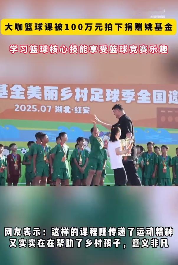 大咖篮球课被100万元拍下捐赠姚基金这场百万公益拍卖,让篮球课的价值超越了技术传授本身。当乡村孩子与NBA球星同场训练,体育的种子已悄然播撒——这不仅是球技启蒙,更是梦想的具象化。姚明团队将商业价值转化为教育资源的举动,精准诠释了"以体育人"的真谛:体育真正的胜利,不在于赛场比分,而在于为更多孩子打开通向未来的窗户。 明星篮球课拍出100万助力乡村体育