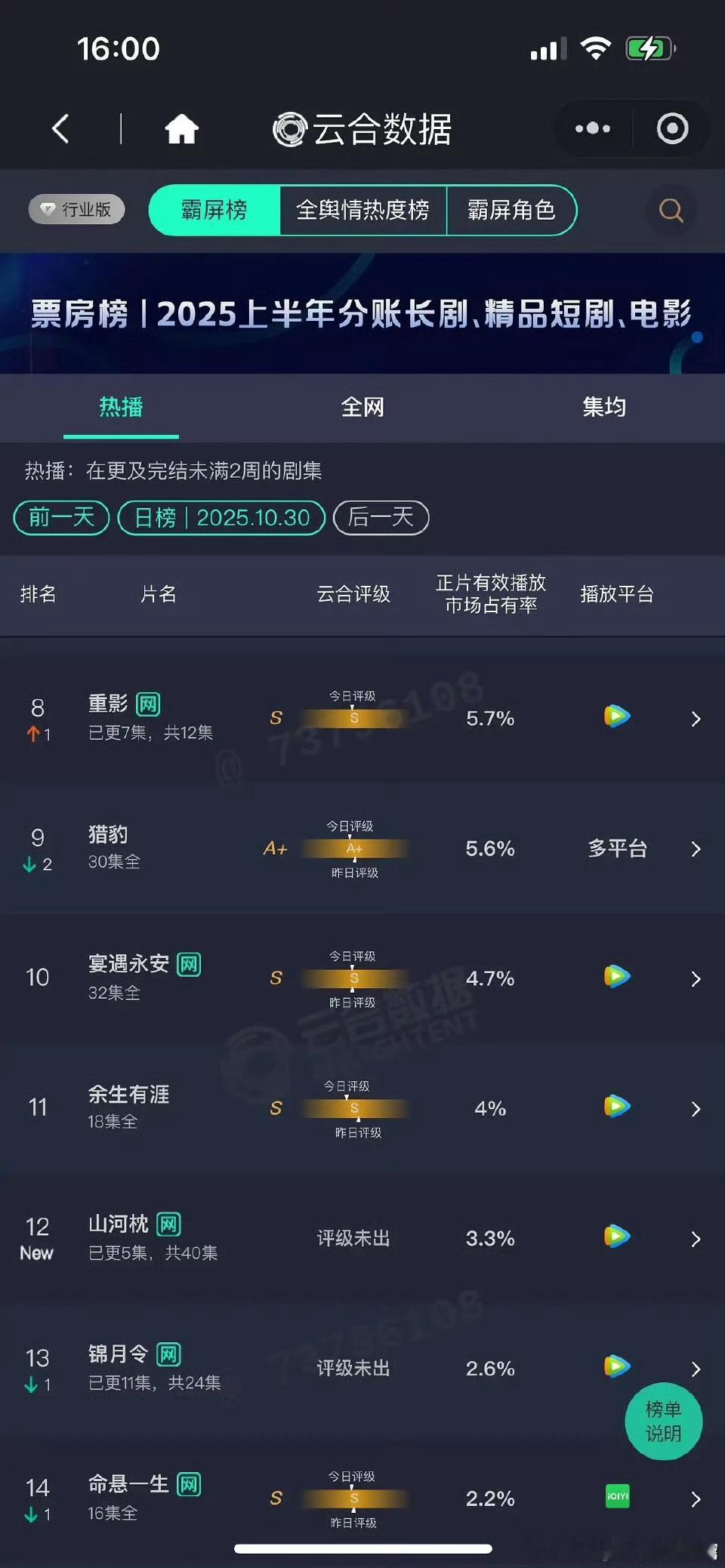 山河枕首日3.3%,云合大概600万播放这也太扑了