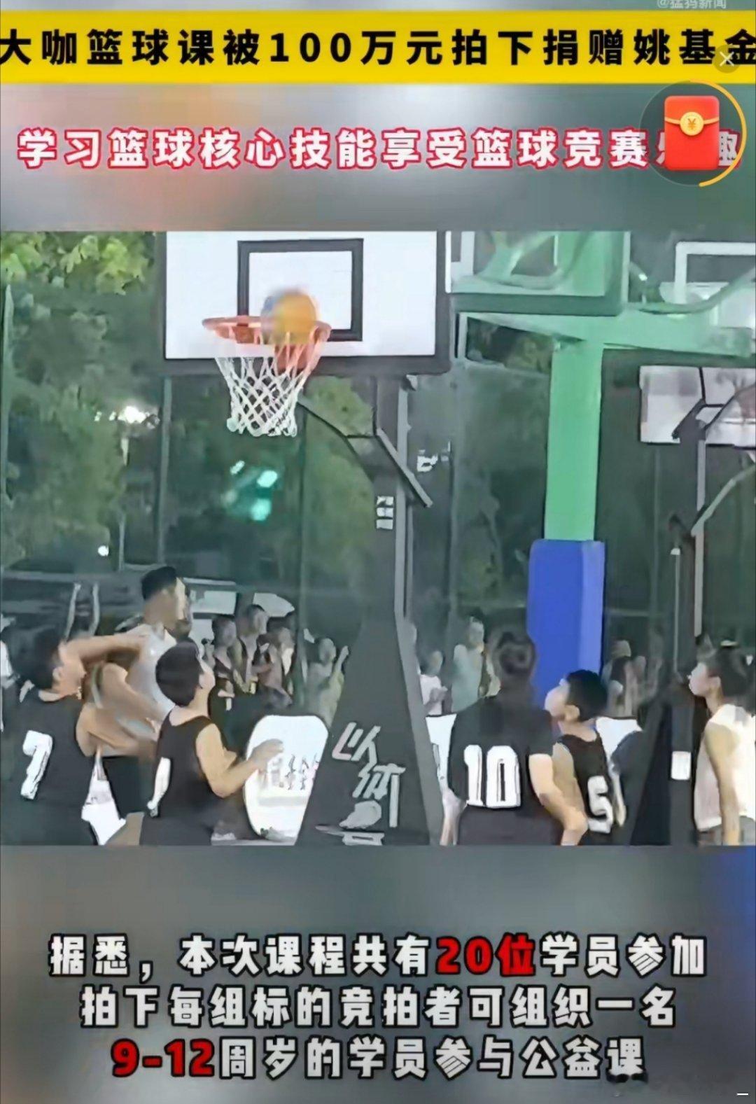 大咖篮球课被100万元拍下捐赠姚基金当大咖的篮球技巧遇上姚基金的“以体育人”,100万的捐赠就有了具象的模样:可能是台盘村球场上又一个奔跑的身影,可能是苗族银饰奖杯前一张雀跃的笑脸,也可能是返乡青年民宿里聊起球赛的欢畅 。乡村篮球的热度,从来都藏在这样的点滴助力里。明星篮球课拍出100万助力乡村体育