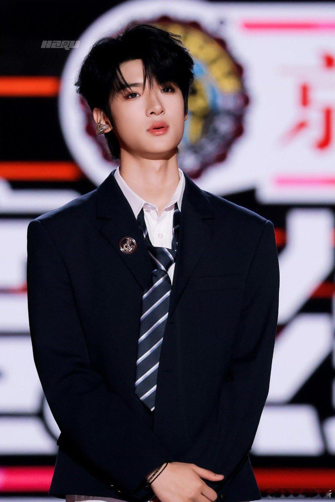 张峻豪校服男高感他单手插在裤兜,白衬衫领口微开,领带随意搭着,步伐轻快,少年感漫