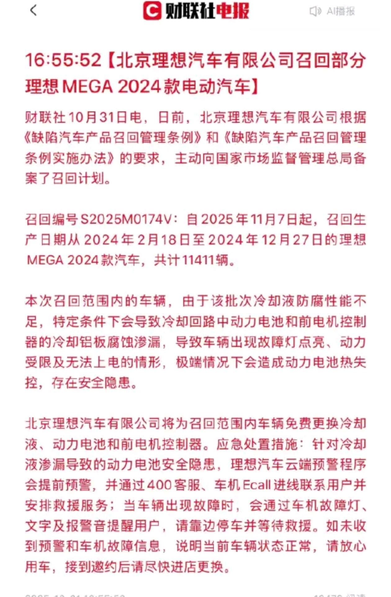 理想汽车宣布召回理想MGEA,找到原因第一时间处理,不逃避,召回处理!庆幸没有发生人员安全,但这个学费真是够贵的,但还是好学生[比心][比心][赞][赞]