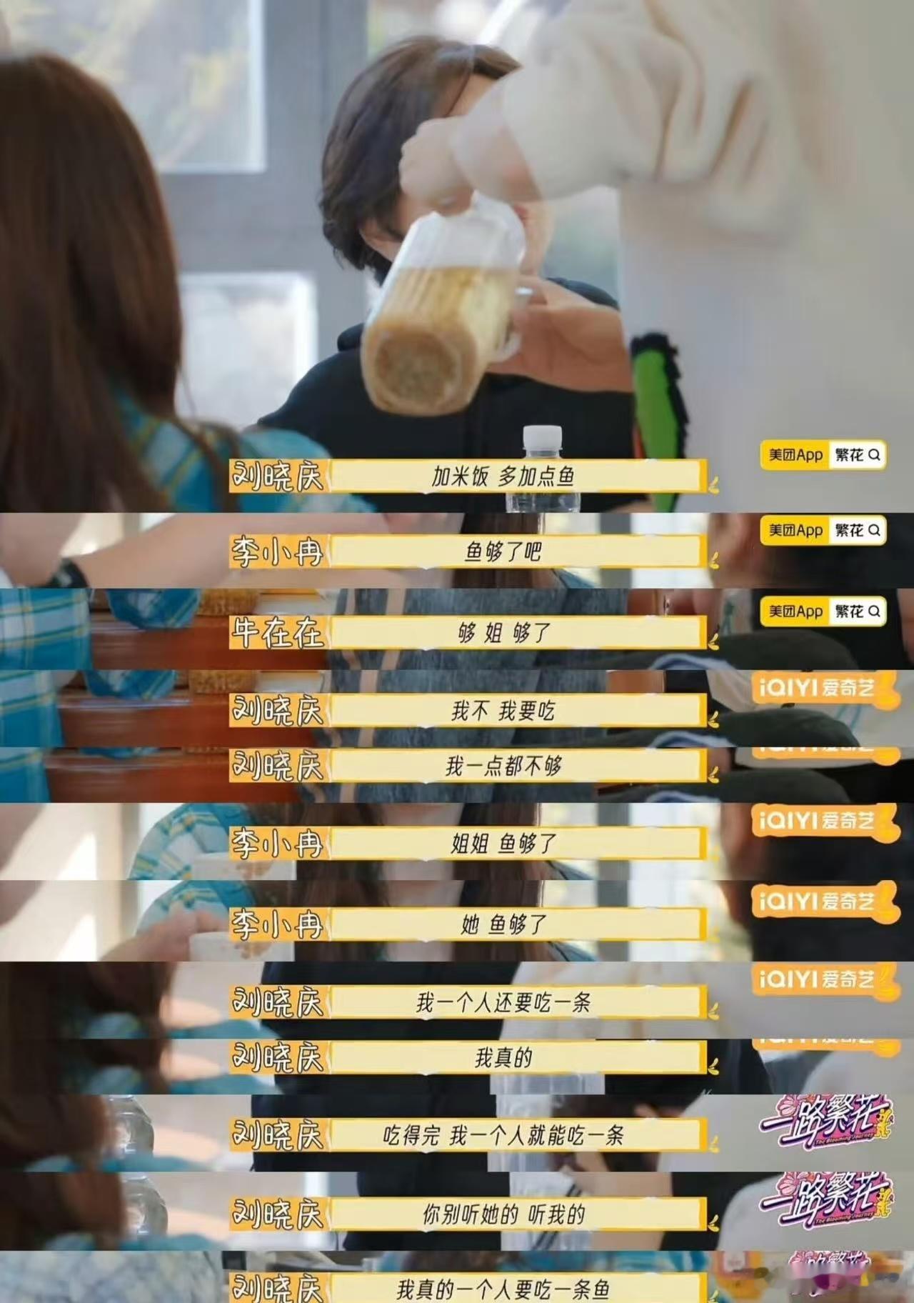 还好柯淳没去一路繁花第一季柯淳两口吃完了一盒大米饭,刘嘉玲说他胃口真好哈哈哈