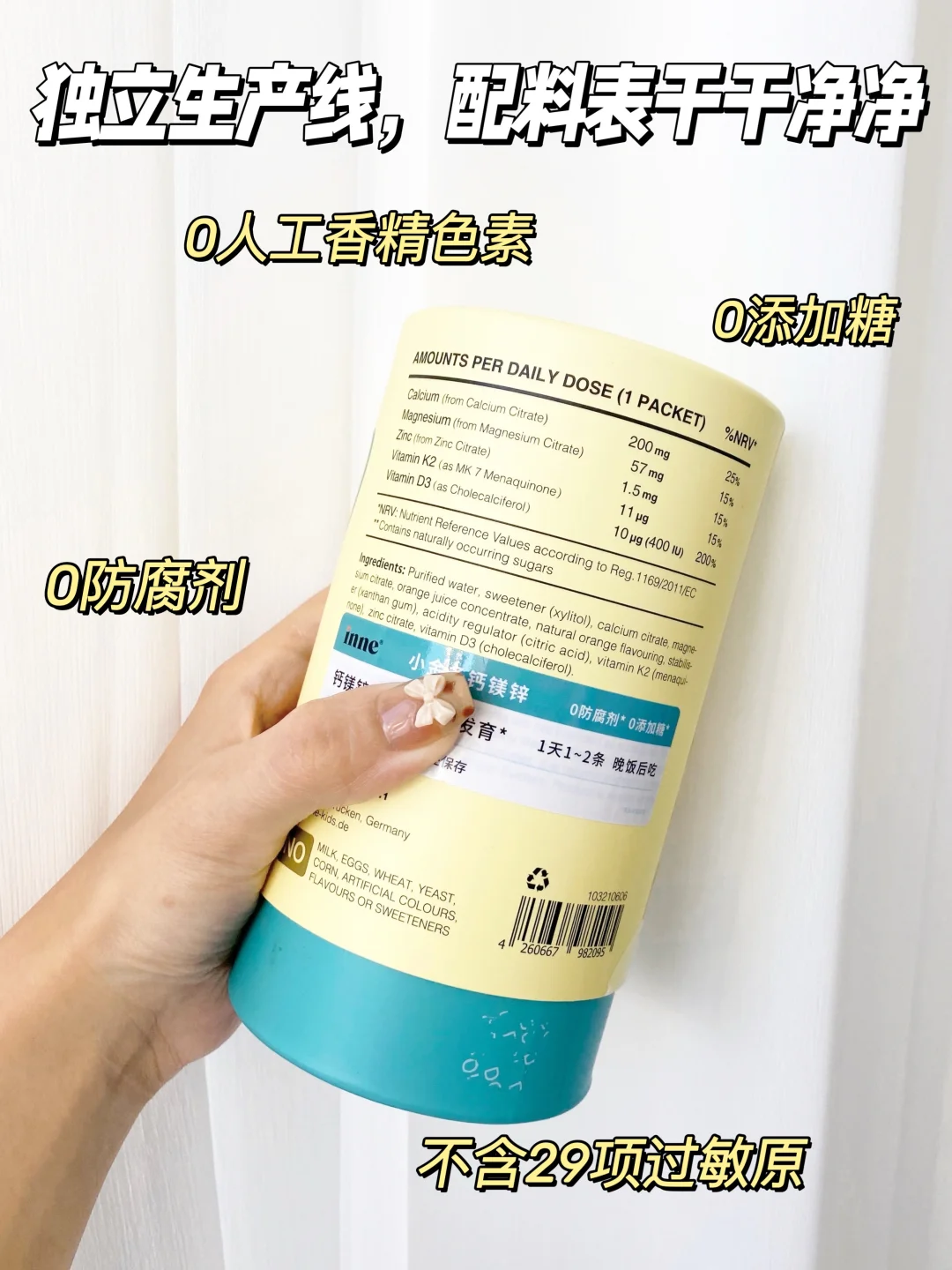 ✨它这个一条就含有钙 镁 锌 D3 K2五重营养,里面维生素D3的含量就有400iu,完全够孩子的每日所需,也可以省去我们再去额外的补充了。