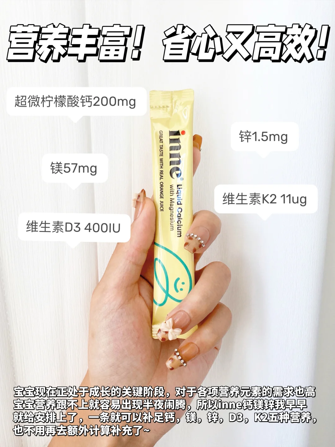 [星R]随着我们家宝宝不断长大,对各种营养的需求也逐渐增大,为了避免因为营养摄入不足而拖了以后成长的后腿,每天在保证宝宝500ml奶量的同时,我还会给她补充inne钙镁锌~[黄色心形R]