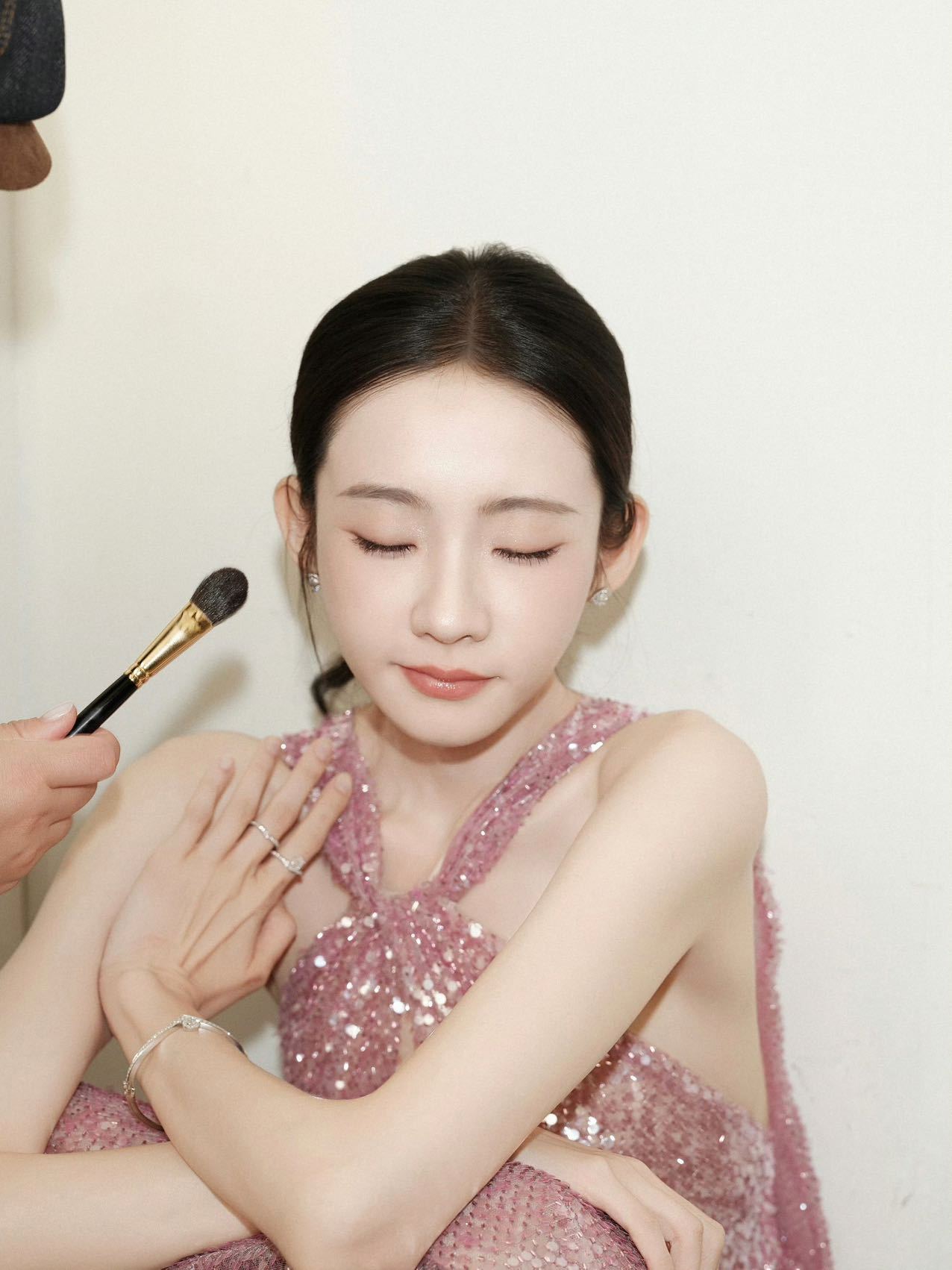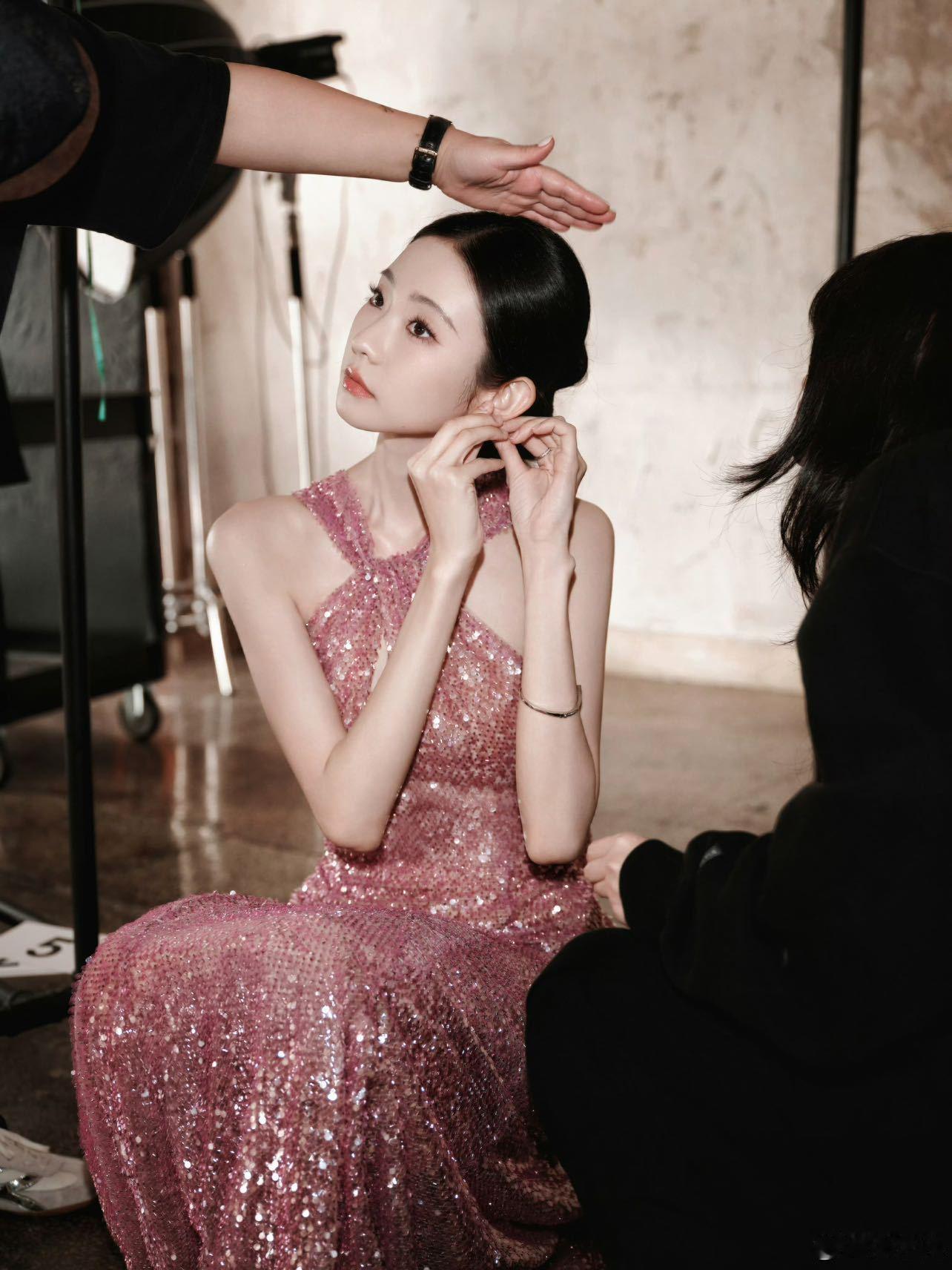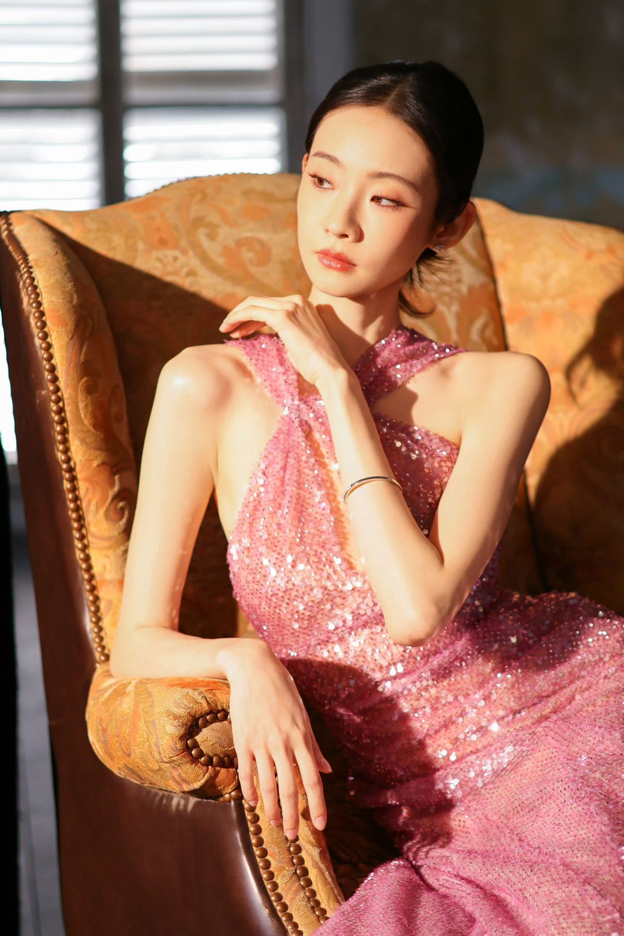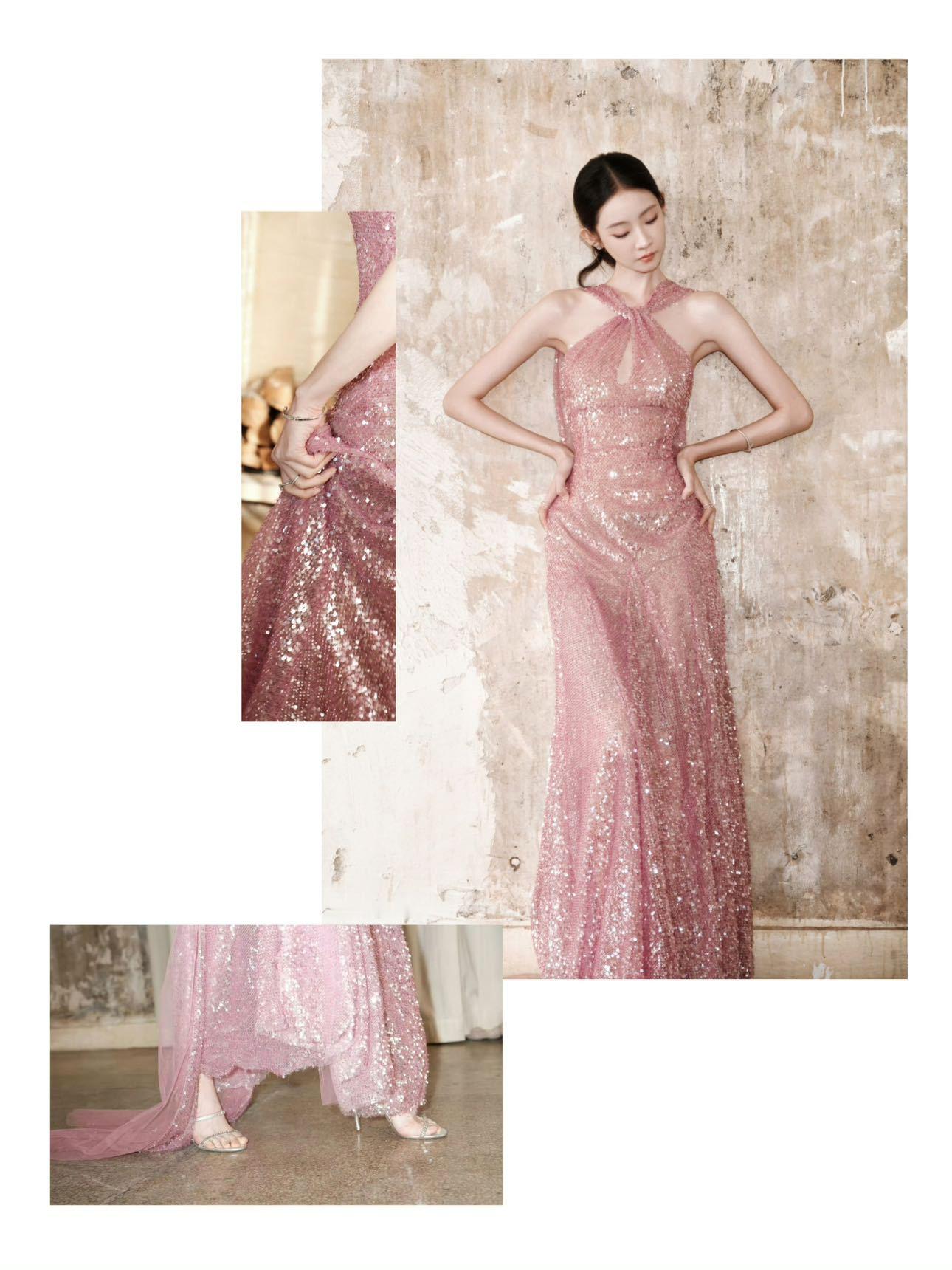 连光都偏爱张艺凡 粉色亮片裙的光泽感与张艺凡的清冷感绝配!交叉颈设计放大优势,天鹅颈又直又美,光落在她身上都舍不得走谁懂✨