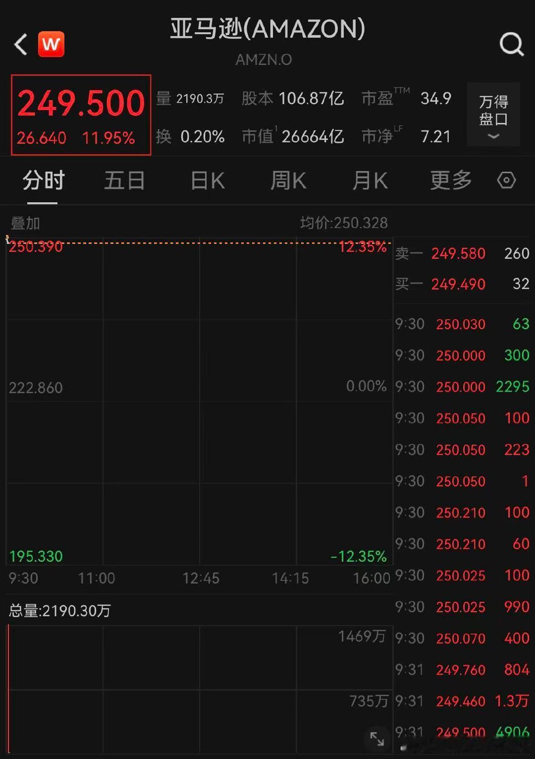 【亚马逊市值骤增近3000亿美元】亚马逊大涨12% 10月31日,在亚马逊和苹果的助攻下,美股三大指数开盘集体上涨,道琼斯指数涨0.06%,标普500指数涨0.72%,纳斯达克综合指数涨1.53%。亚马逊股价开盘大涨12.2%,市值骤增近3000亿美元,其云计算部门(AWS)第三季度营收增长20%,超出华尔街预期。苹果股价上涨约2%,受iPhone 17热销的提振,该公司最新季报超预期,并预计下财季将继续保持强劲。(财联社)