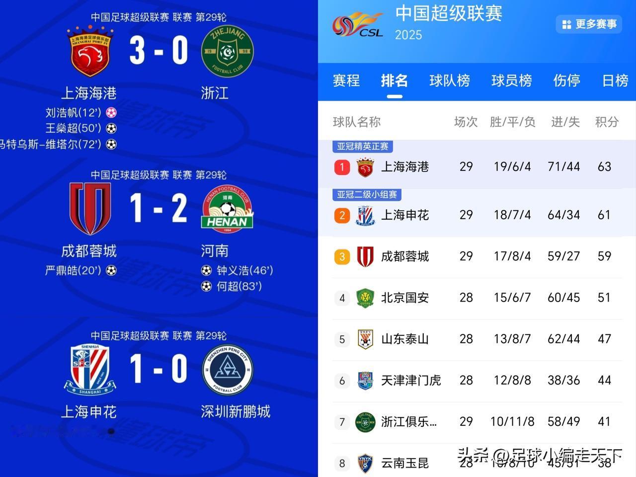 今年的中超冠军又要留在上海了?最后一轮我看好上港输球夺冠。[捂脸] 海港客场踢大连不一定赢,大连主场最后一场+球迷氛围平的面大,闹不好爆冷赢海港,关键申花自己不一定赢。 说实话,申花今年还是不要夺冠了,这赛季从裁判身上获利确实有点多,从第一轮踩踏对方门将加超长补时开始,有好几场的争议判罚。就算夺冠了也让人不服! 不得不说现在的中超确实越来越没意思了,一帮子臭鱼烂虾菜鸡互啄,都是窝里斗,对外成绩一塌糊涂,国家队成绩一塌糊涂!年年争冠军的球队,球员没有一点进步!