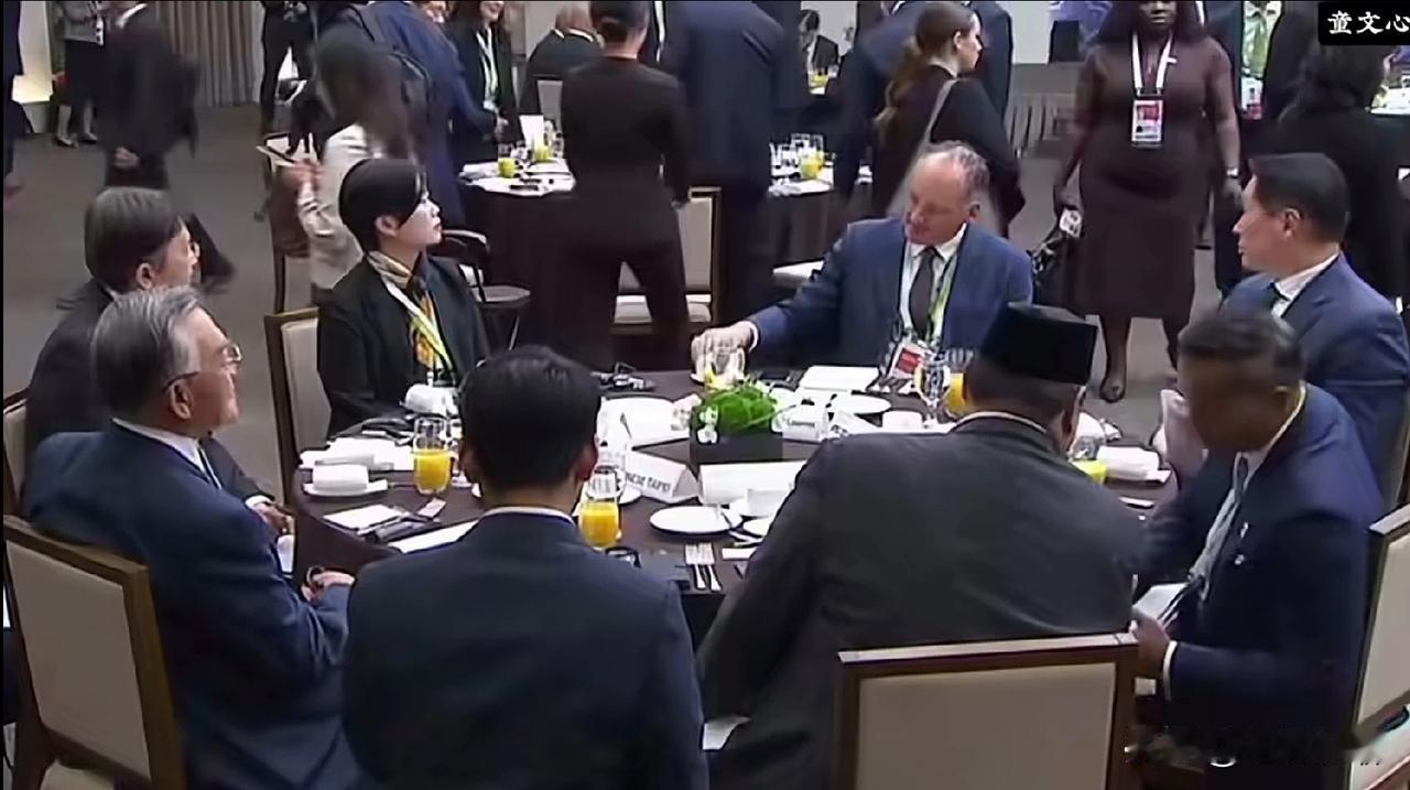 这是今天APEC会议后的午宴大厅,看着还挺热闹,大厅内人声鼎沸,相互之间在握手寒暄或攀谈。 可镜头一转到桌面,怎么看着有点寒酸呀,没看见有啥菜,只看到每人跟前放着一杯果汁,就这?喝果汁就能喝饱? 恕我孤露刮闻了,也有可能菜还没上,也不知道他们能不能吃得惯泡菜?(图片来自网络) apeac峰会 APEC风波 ccac峰会 西餐冷餐会 发布会餐厅 这就是APEC 会客餐厅