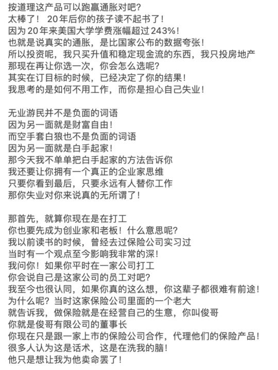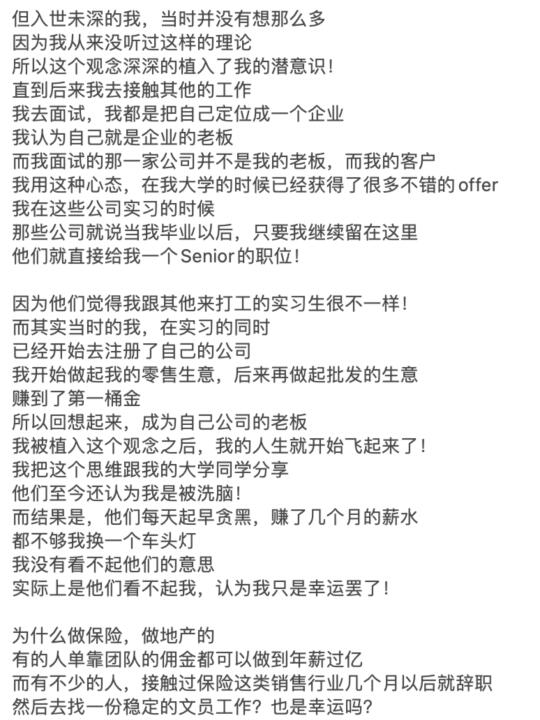 就告诉我,做保险就是在经营自己的生意,你叫俊哥