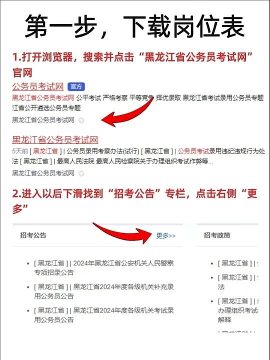 1、黑龙江省考搜索点击“黑龙江省公务员考试网”,进入“招考公告”专栏,点击“黑龙江省各级机关考试录用公务员公告”,下滑至公告底部点击下载即可获得岗位表。打开岗位表,开始筛选