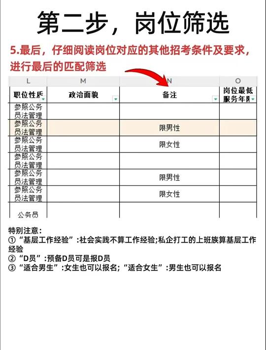 1、筛选出限制条件多的,三不限岗位慎选,限制越多,竞争越小!要利用专业、学历、应届生等优势选择限制条件多的岗位(但是有的专业如工商管理类,竞争也超级激烈,慎选有它的!)