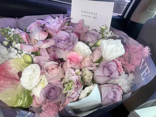 遂把两句都发给花店店主 让店主姐姐帮忙看看哪句更吉利(人家肯定比我有经验多了)
