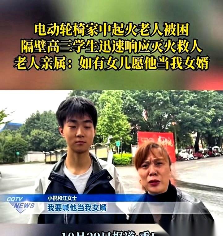 就离谱。 一个高三小伙子,半夜三更穿着条摇裤(就是内裤),冲进火场救了俩八十多岁的老人。 这事儿听着像段子,但它真实发生了。 小伙子刚下晚自习,洗漱完躺床上,隔壁“嘭”的一声,紧接着就是老人惊恐的呼救。 他自己后来说,当时也害怕,但脑子还没反应过来,人已经光着脚冲出去了。 真的,那一刻什么“临危不惧”、“深思熟虑”都是扯淡。 就是一种本能。 一种刻在骨子里的,最朴素的善良。 他冲进去,先把吓懵的两位老人弄出来,再把起火的那个电动轮椅给推出去,然后几桶水把火浇灭。 一气呵成。 冷静得像演习过八百遍。 事后,老人的女儿赶来,哭得稀里哗啦,对着镜头说,感谢小祝救了她爹妈两条命。 说着说着,又忍不住笑,说这孩子太实在了,“穿着摇裤就冲出来了”。 最后甚至抹着眼泪说,要是自己有个女儿,高低得把这女婿招了。 你看,一个母亲,在那种极度后怕和感激的情绪下,能给出的最高评价,就是想把自己的全世界(女儿)托付给他。 网友们也特有才,直接送了个外号:“摇裤侠”。 多好啊,这个外号。 它一点也不“伟光正”,甚至有点好笑,但它真实。 英雄哪有什么固定的造型啊?电影里的英雄穿着战衣,咱们身边的英雄,可能就穿着一条洗得发白的大裤衩。 这才是少年该有的样子,有血性,有担当,更有脑子。 这种帅,是装不出来的。