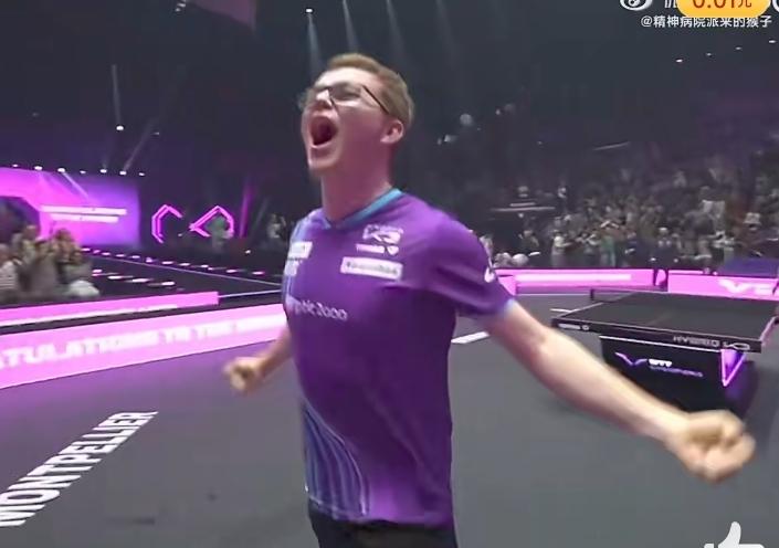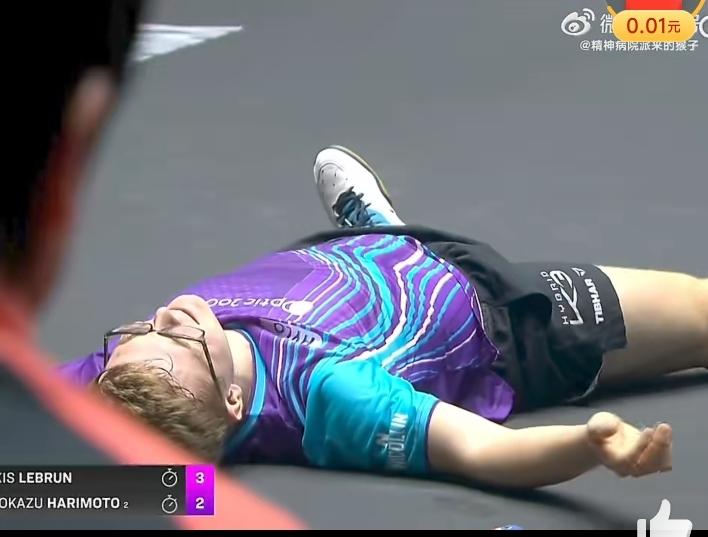 张本智和🇯🇵二轮游了[捂脸]! 刚刚,主场作战的大勒布伦🇫🇷上演让二追三,3-2击败张本智和🇯🇵,晋级WTT冠军赛蒙彼利埃站男单八强! 五局比分为:9-11,10-12,11-4,11-9,12-10。 获胜晋级的大勒布伦先是倒地庆祝,然后在看台上山呼海啸般的球迷喝彩声中举着双手飞奔致谢,呆若木鸡、脸色难看的张本智和只在镜头中出现了一秒钟[捂脸]。 决胜局张本智和10-6领先拿到局点,但却硬生生被追了四个赛点,10-12被翻盘,这场比赛让我认识到,国乒选手在主场作战时,我们的粉丝还是太含蓄了[笑哭]。