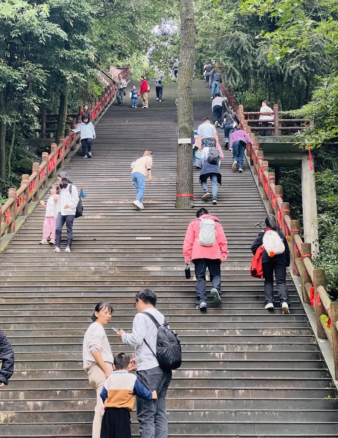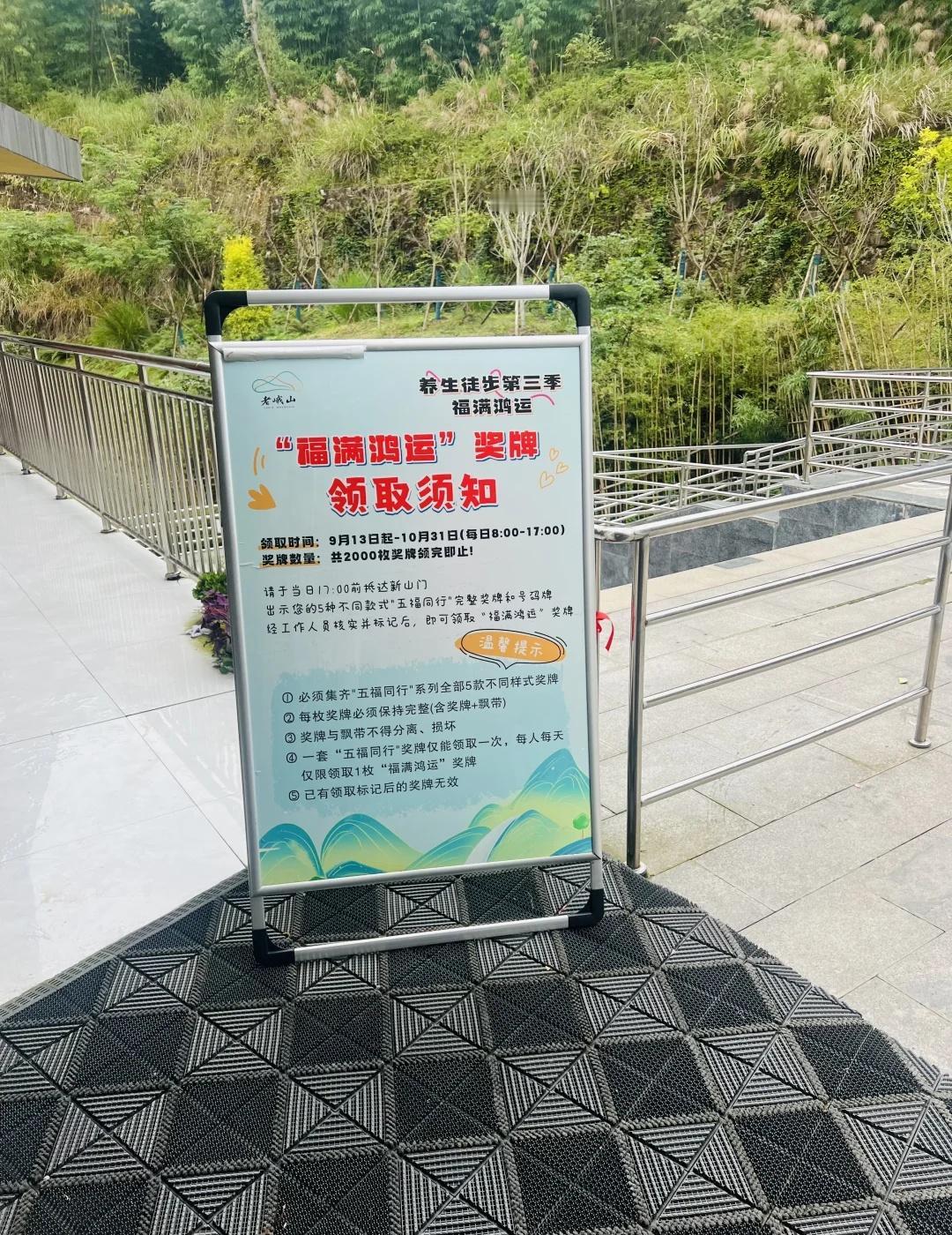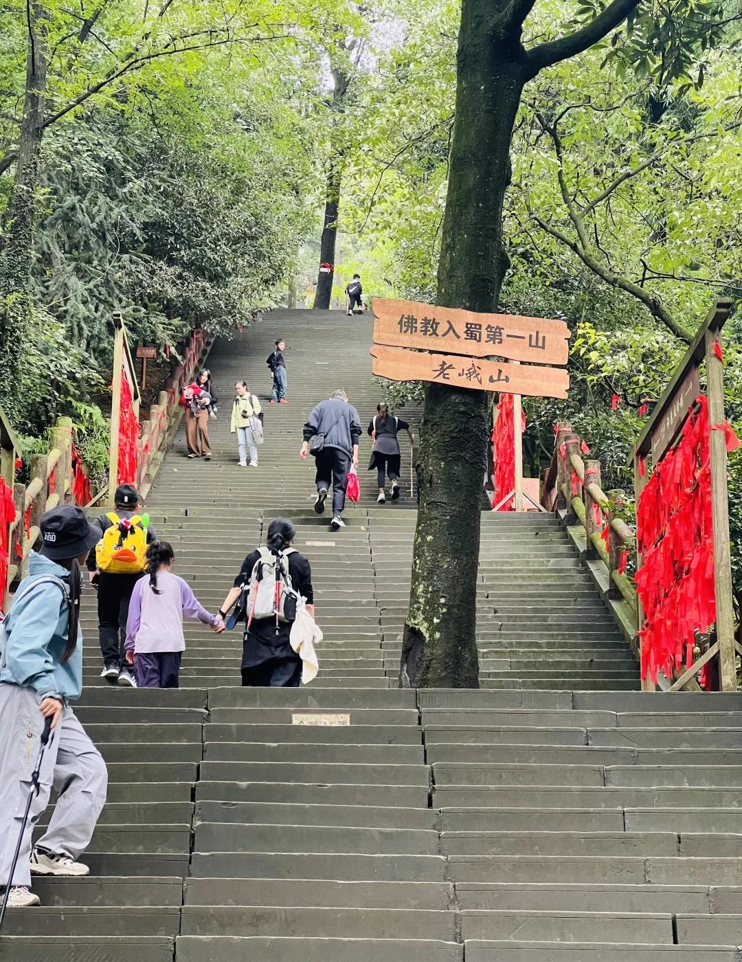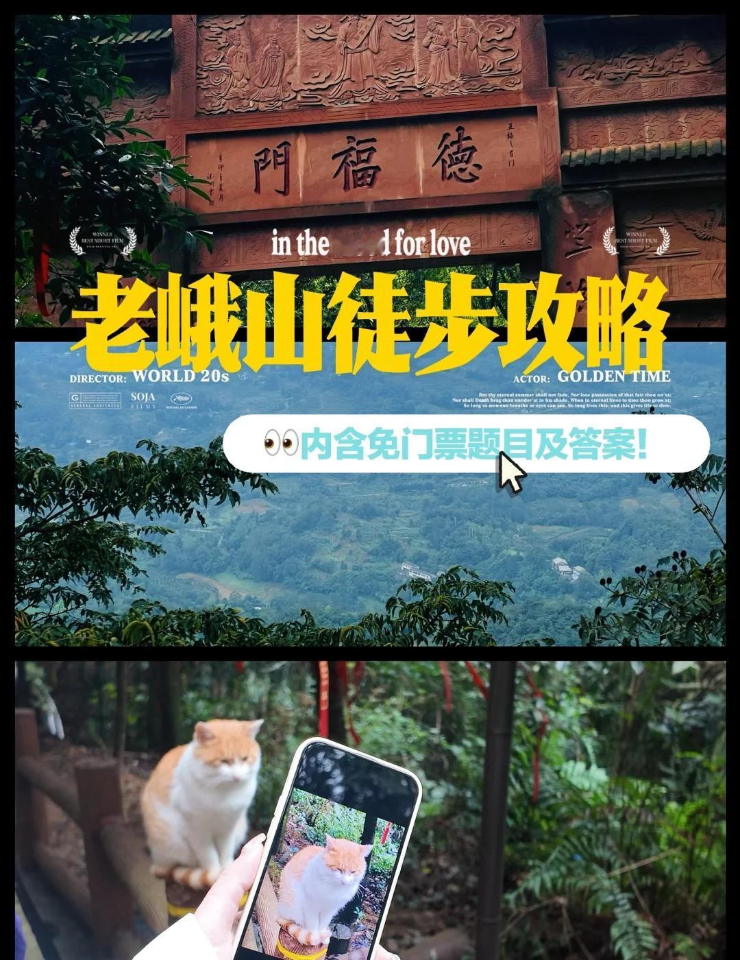 成都周边一日游|老峨山超全徒步领奖牌攻略! 嘿,宝子们!又在成都憋坏了吧?上周末去了趟眉山的老峨山,真的被这个“小峨眉”惊艳到了!人少景美,不仅可以答题通关免门票,还能徒步打卡免费领取奖牌!一天打来回毫无压力,分享我的保姆级攻略给大家! 我的一日游路线(懒人&打卡兼顾版) ⏰ 11点抵达景区 停好车,进入售票大厅,找到“智勇大冲关”的挑战窗口(图3),我们一共三个人,有两人通关拿到了免费门票,另一人只答对了一题,所以是半价购买的!(题目和答案在图5)然后在旁边购买到山门的往返观光车票(来回20元/人)如果走路大概需要50分钟左右 📸 11:30到达观光车下车点! 前往山门的途中会经过两家小商贩,我们在左手边这家吃了牛肉面!(图7)味道还不错(在景区里算味道不错的),价格10元一份,还有抄手/酸辣粉/烤肠等 📸 12点山门打卡! 第一个打卡点位!到的时候已经有超多人在领奖牌了,幸好奖牌不限量!打卡完往里走会经过一个分叉口,我们需要朝左手边往下走 📸 12:15 澄怀湖打卡 这是第二个打卡点位,打卡完后我们是原路返回的!💪体力充沛的宝子也可以在打卡点根据指示牌走另一条徒步路线 👣12:30原路返回到刚才经过的岔路口往上走 会经过德福门|长寿门|康宁门然后到达“佛缘爱”注意‼️:往左手边走一路都是台阶,不喜欢爬台阶的可以走右手边这条路线!会轻松很多! 我走的是左手边,路过了很多寺庙,大家感兴趣也可以去拜一拜!就是这个台阶爬的我想回家😭(图17) ⛰️ 14点登顶 坚持就是胜利!爬上金顶的那一刻,所有疲惫都值了!🤩这里是第三个打卡点位,打完卡之后可以在这里休息一会看看山顶的风景,拍点美照 14:20 开始下山 我们还是选的原路返回,比较快。体力充沛的宝可以走另一条线! 15:30 回到山门兑换奖牌 · 如何领取:打卡完成后会有一个兑奖二维码,给工作人员验证,即可免费领取! · 截止时间:17:00前必须领哟,名额和奖牌都是当日有效,逾期自动放弃,所以千万别拖延~ 🚗 15:40 返程 轻松愉快地结束一天行程,回成都吃顿火锅犒劳自己,完美!快点赞收藏这篇攻略,周末就出发吧! 因字数限制,超实用tips我放在评论区啦,左下角也可以下赞完整攻略的文件哦