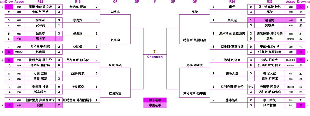 几家欢乐几家愁, 男单八强新鲜出炉了[笑哭]! 2025WTT冠军赛蒙彼利埃站男单八强如图所示。 至此,八个种子选手还剩四号种子莫雷加德🇸🇪和七号种子达科🇸🇮[笑哭]。 看来冠军要有新的选手来担当了,我现在非常好奇上半区这四位非种子选手谁能冲出来呢?[吃瓜群众] 目前我预测是西蒙·高茨🇫🇷[笑哭]! 下半区有可能是邱党🇩🇪! 一起观赛见证哦[笑哭]。
