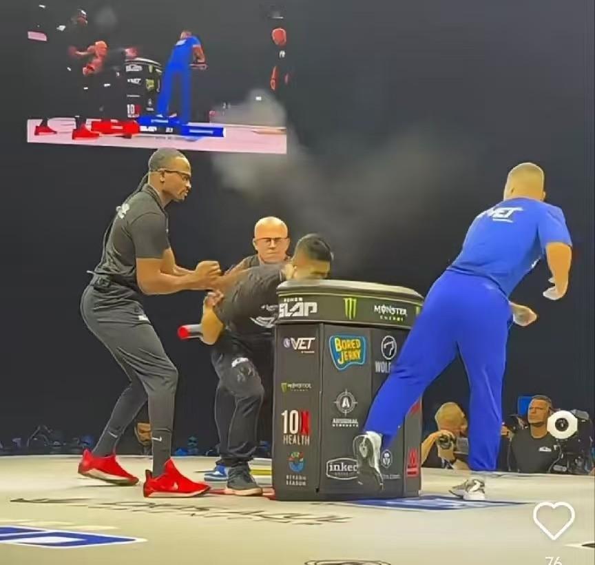 通背拳第9代传承人赵鸿刚报平安了,说还好,让大家别太担心。 他坐了10个小时的飞机来到沙特利雅得,参加世界职业扇耳光大赛。 对手阿曼塔耶夫是层层选拔出来的硬汉,职业运动员,哈萨克斯坦人,身材高大,曾经获得多个拳击赛事的金腰带。 而且对手轮左手时被拍到抬脚了,但问题是他没抗住那一下,直接被ko。 虽然可惜,但赵鸿刚也表现了自己的坚韧,头一下就被打伤了,也坚持到最后。 对手还是有经验,先是故意打高,击中赵鸿刚眼眶,等赵发力时他又躲避,第三下违规转体,用左手砍赵的脖子。 而且有网友找出那位与赵鸿刚“切磋”的胡子男,疑似就是阿曼塔的教练,提前试探了赵的实力。 这次比赛,赵鸿刚就吃了太实在和经验少的亏,他是个爷们儿,下次再战就好!