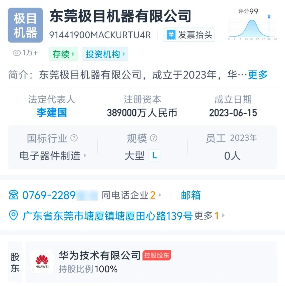2023年6月,华为成立东莞极目机器有限公司,定位为人形机器人资源整合平台。