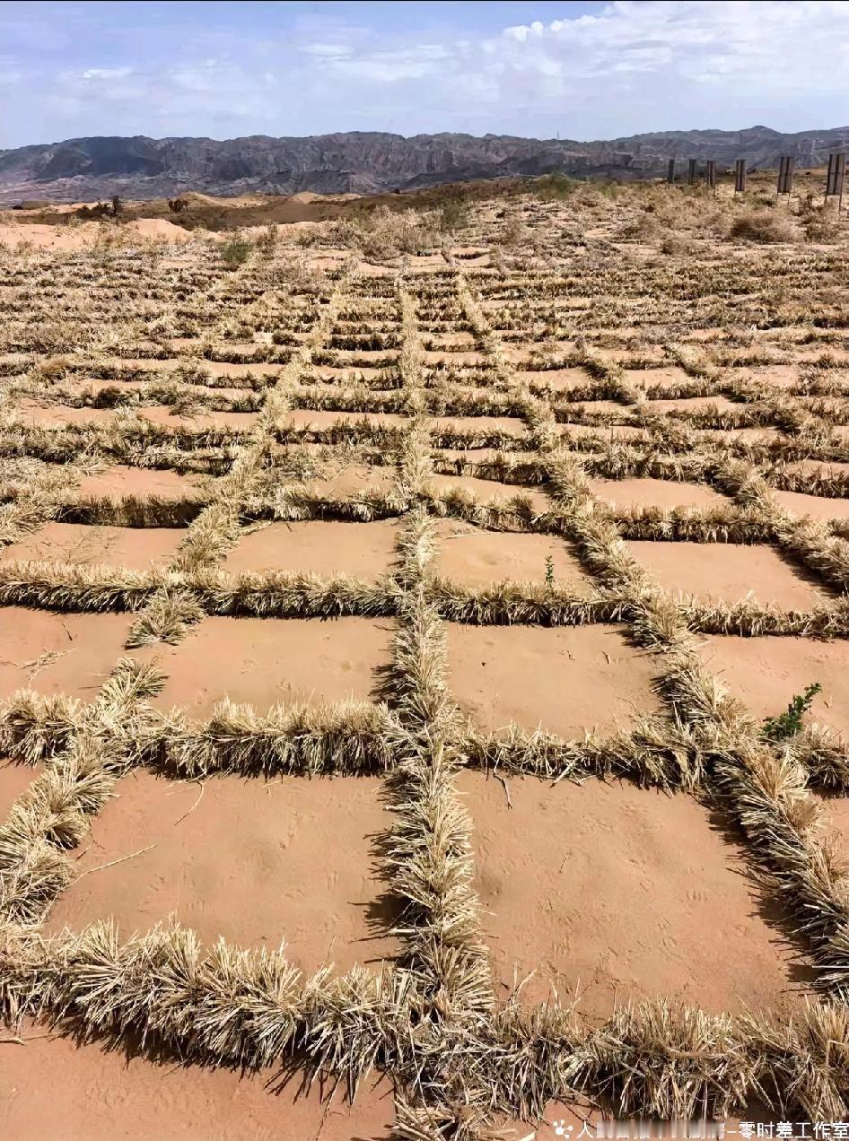 这是草方格沙障 主要用于沙漠治理 能有效防风固沙,减少沙漠的移动,为后续植物种植创造条件。  在我国西北沙漠地区(如宁夏、甘肃等地的沙漠地带)广泛应用,是我国治沙工程中的重要措施之一,体现了人类治理沙漠、改善生态环境的智慧和努力。