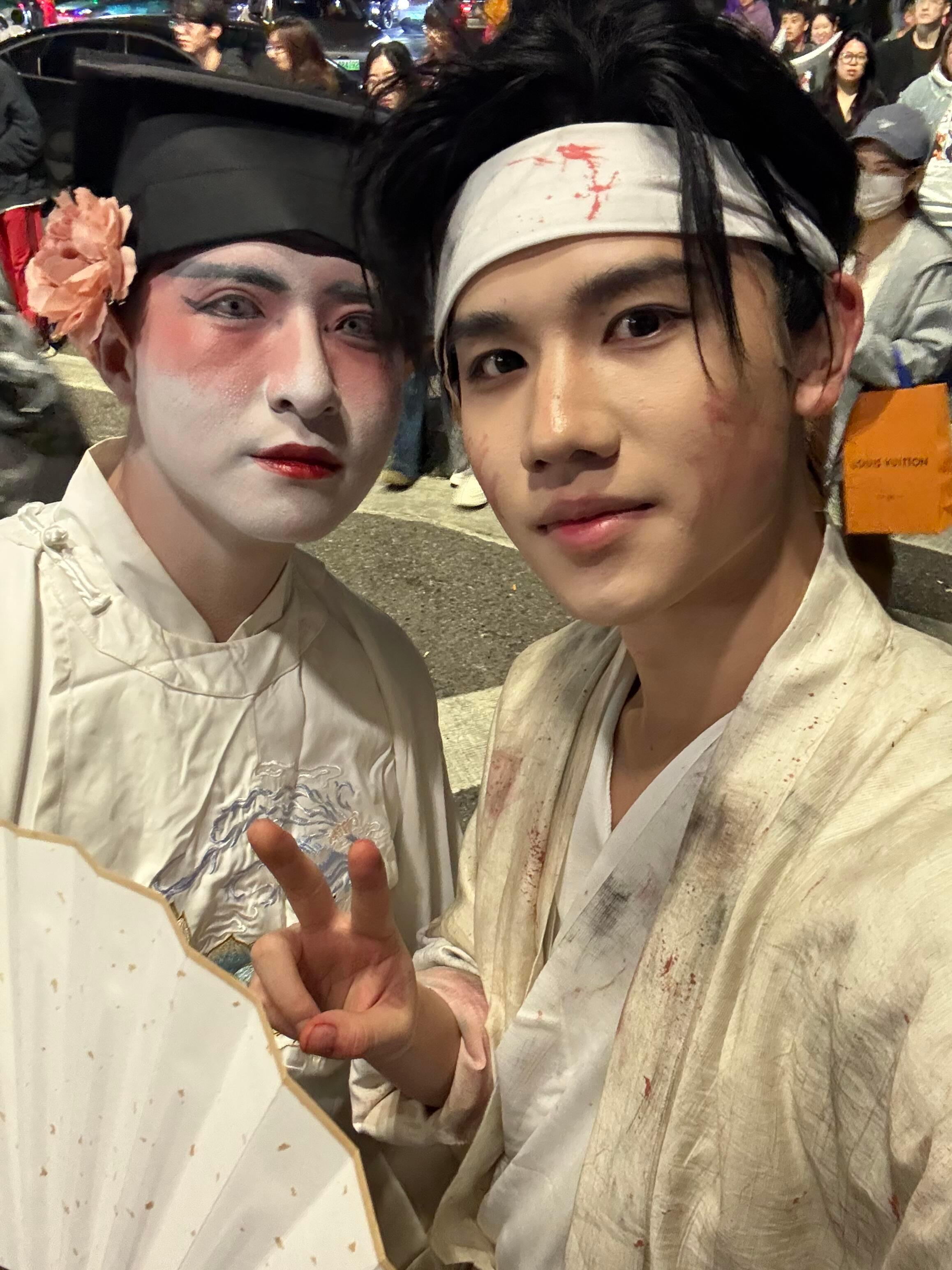 肖战藏海传真的好出圈,万圣节有人cos藏海大人,现场好多人都在拍[good]安保