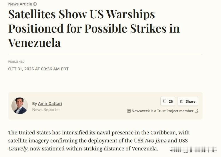 🇺🇸⚔️🇻🇪据美国《新闻周刊》报道,由于“特殊安全考虑”,美国关闭了波多黎各附近空域,关闭时间将从2025年11月1日到2026年3月31日。 ▪️与此同时,搭载护航编队的“硫磺岛”号两栖攻击舰的已部署到距离委内瑞拉的拉奥尔奇拉岛约200公里的位置。 ▪️美国国会议员卡洛斯·A·希门尼斯在X平台上写道:“委内瑞拉将获得自由。” ▪️但美国昨天特朗普告诉记者,他不打算对委内瑞拉发动任何打击。 守护委内瑞拉 委内瑞拉战备