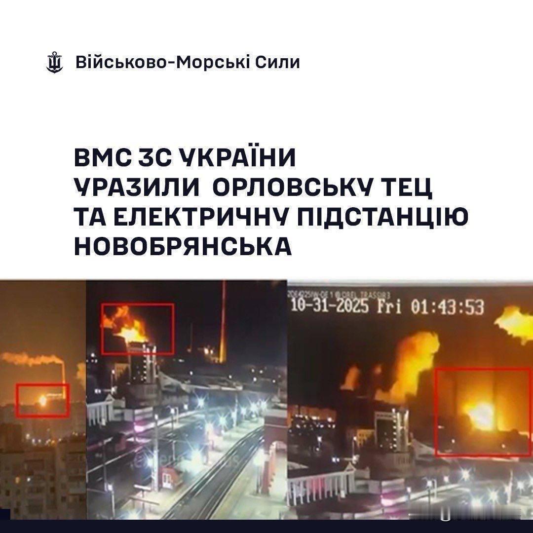 乌克兰海军表示,10月28日至29日对俄罗斯奥廖尔州的奥廖尔热电厂和俄罗斯布良斯克州的750千伏“新布良斯克”变电站的打击是由“海王星”巡航导弹和远程实施的。