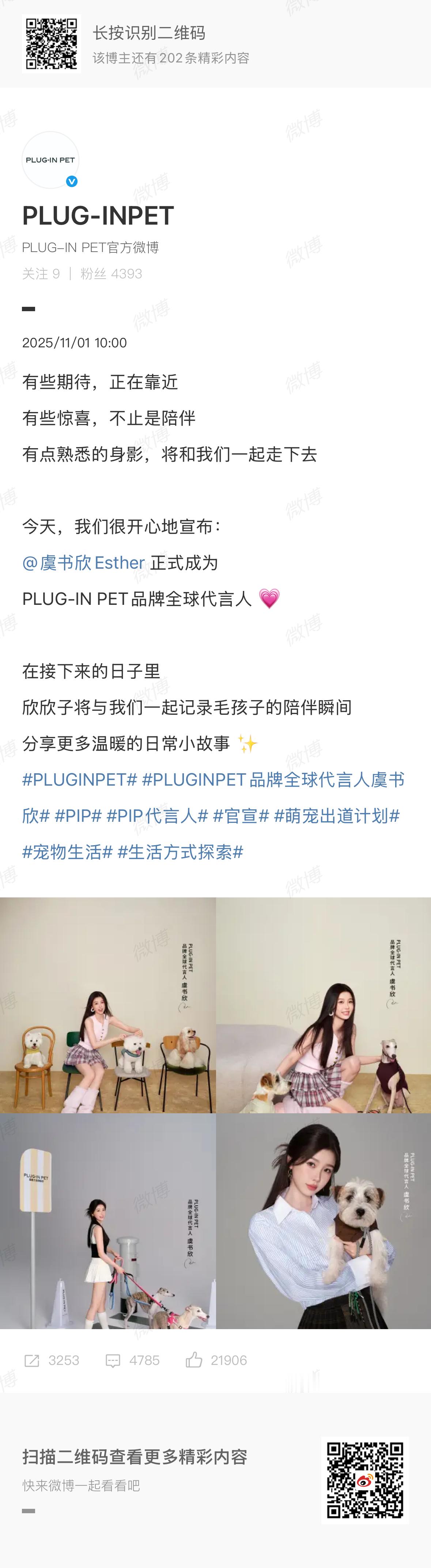 虞书欣PLUG-IN PET品牌全球代言人官宣