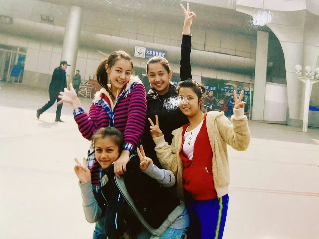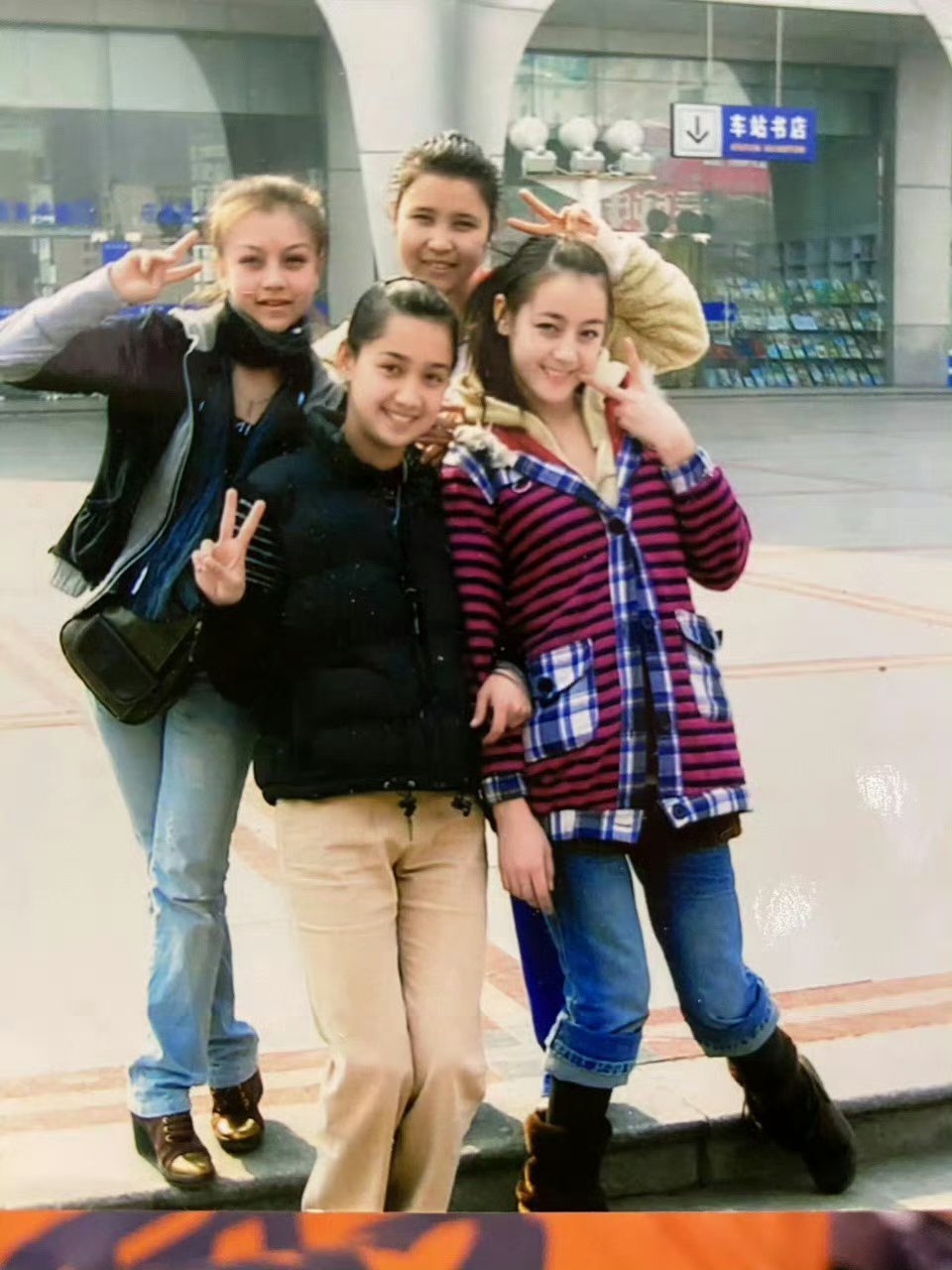 张天爱跟素人合影,胯真的好宽,大宅院似的