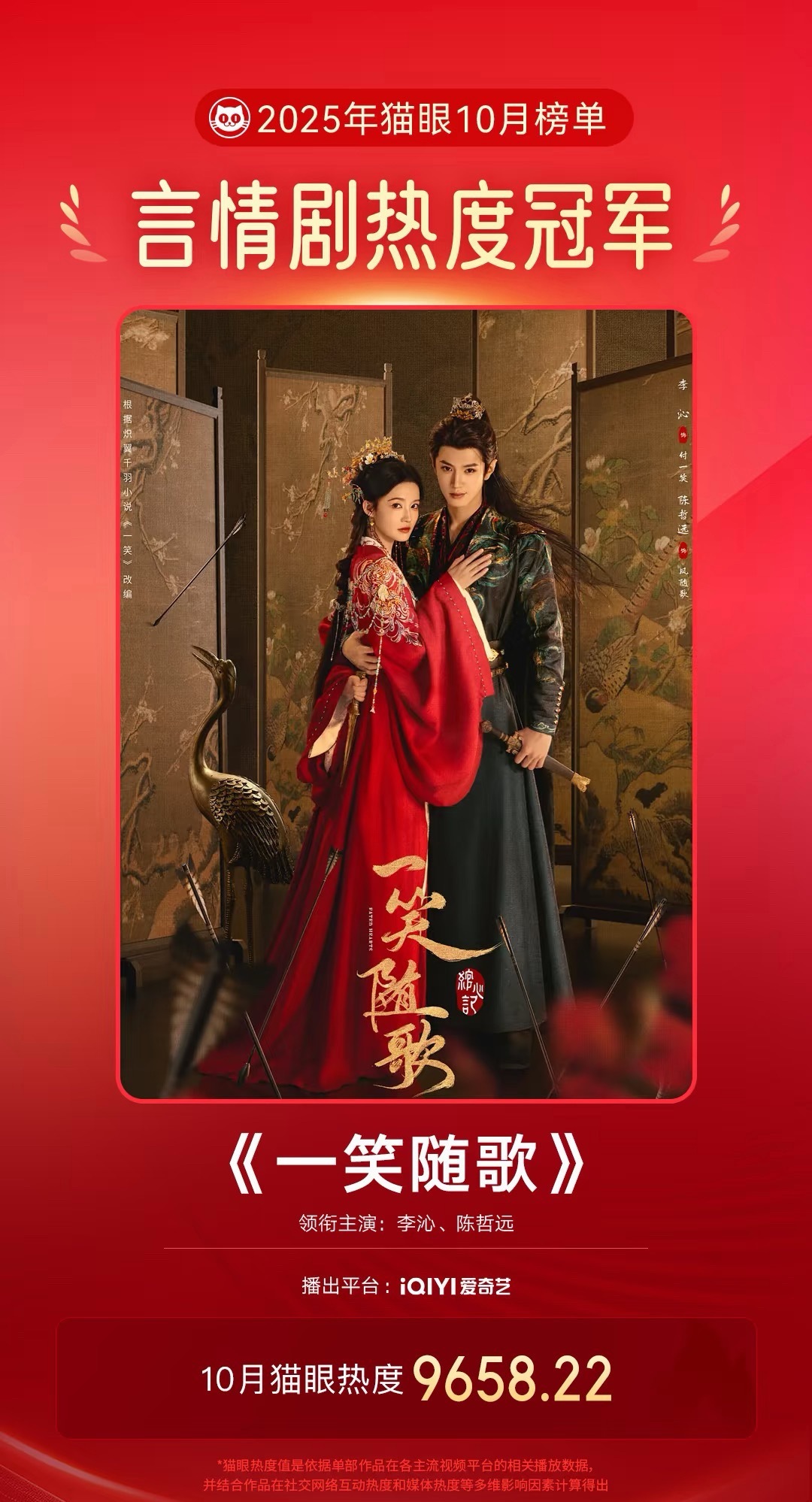 李沁陈哲远《一笑随歌》1月言情剧热度冠军