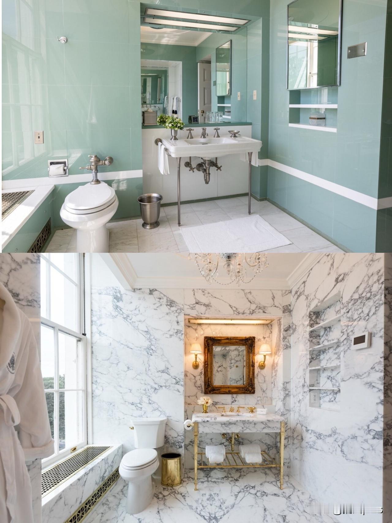 特朗普改造了白宫的“林肯浴室”,风格变化很大,但网友关注的是马桶旁边就是一面巨大的窗户,怎么上厕所是一个问题。 特朗普发布了白宫“林肯浴室”的翻修前后对比照片。人们发现,白宫浴室的马桶位置很有意思,居然靠近一面落地窗,而且没看到有窗帘,至少照片里没看到。 美国网友感叹,坐在白宫马桶上能看到很好的风景,但似乎缺乏隐私。此外,对于白宫浴室的新风格,美国网友出现了分歧,有人喜欢以前的怀旧风格,有人则说之前白宫浴室像是医院洗手间或纽约廉价公寓的卫生间。