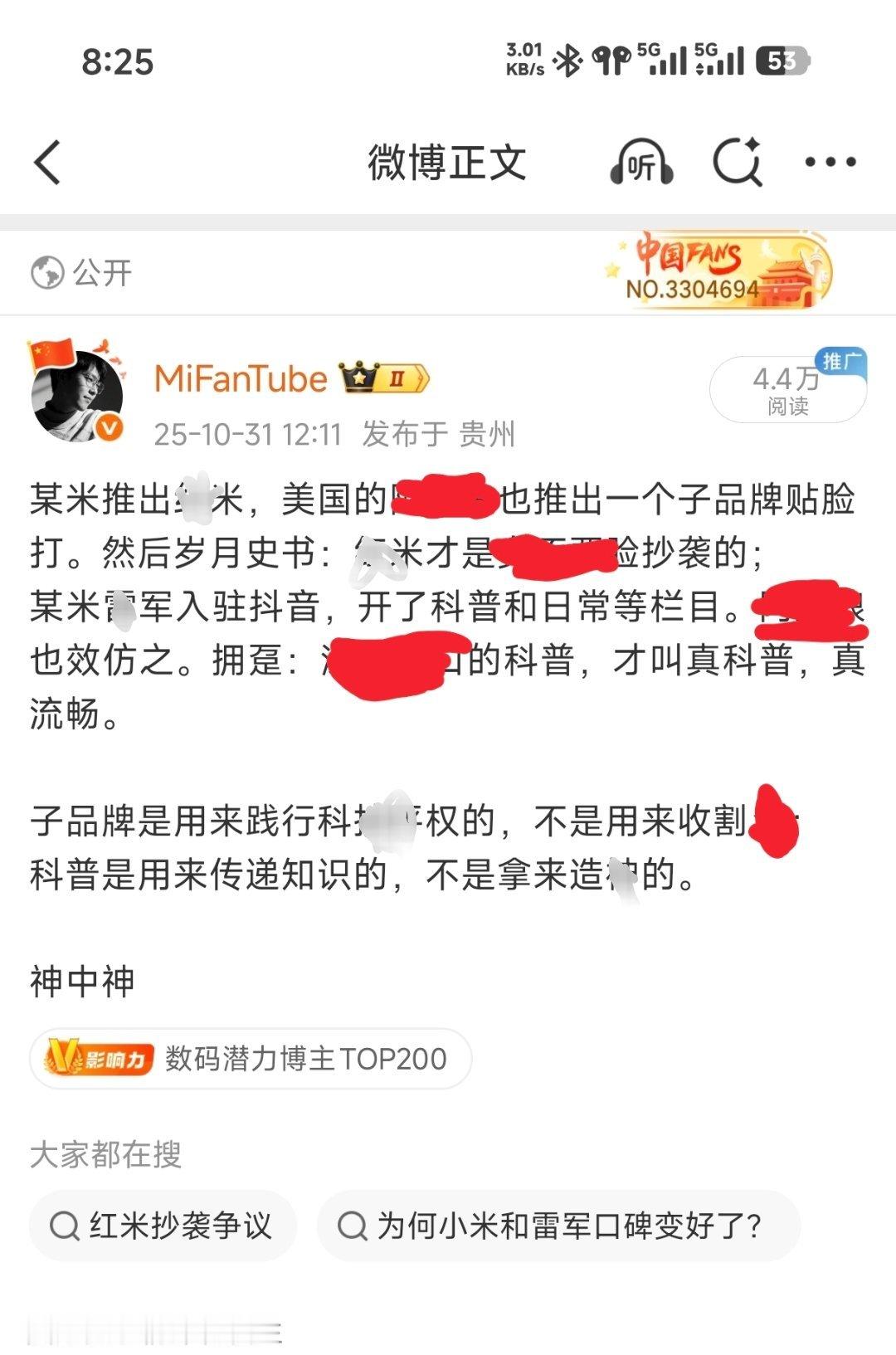 视频今天刚看。小米起诉他,我认为没啥必要,固定下证据就行。视频内容没觉得被冒犯,