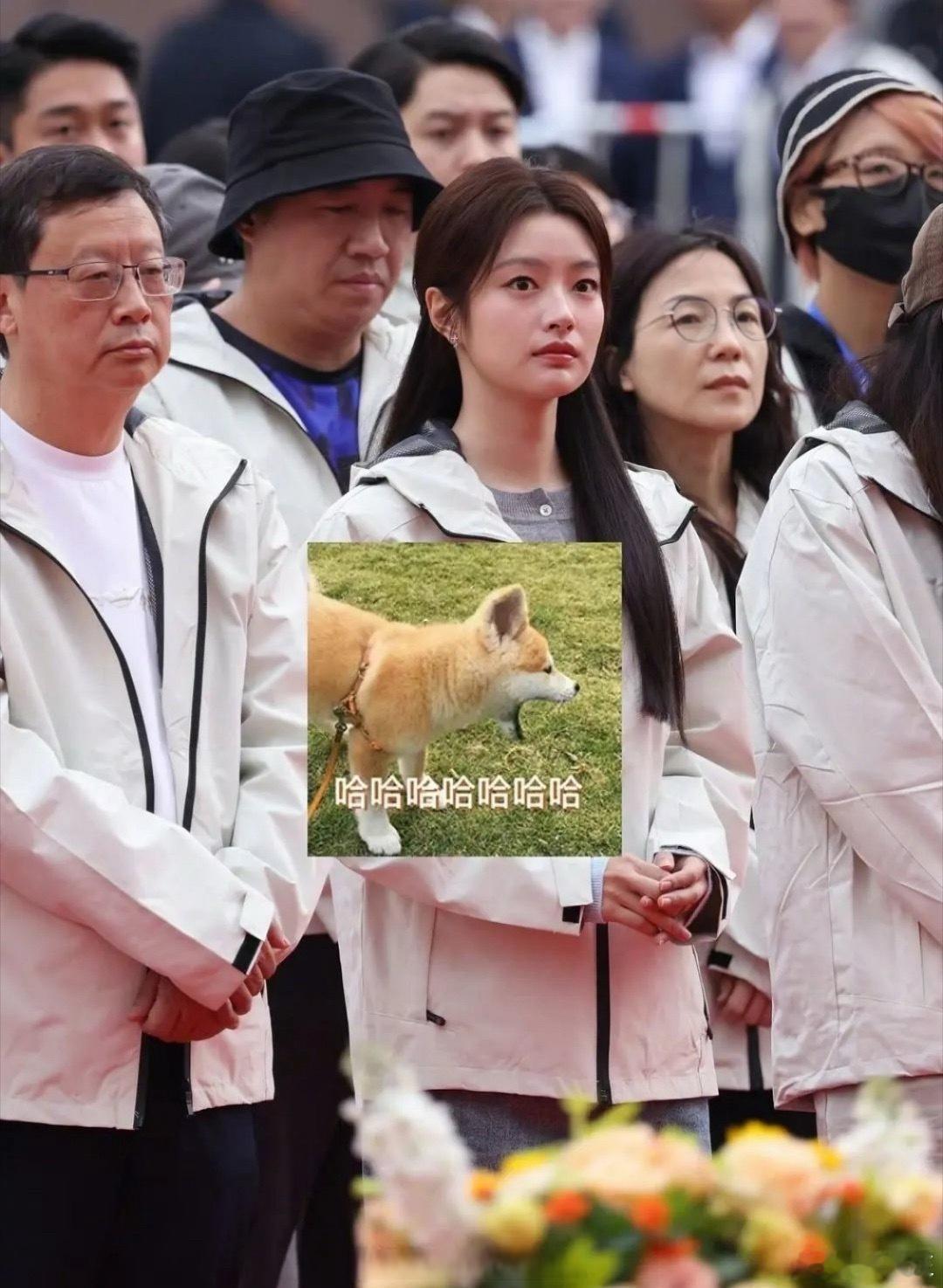 张天爱跟素人合影,胯真的好宽,大宅院似的