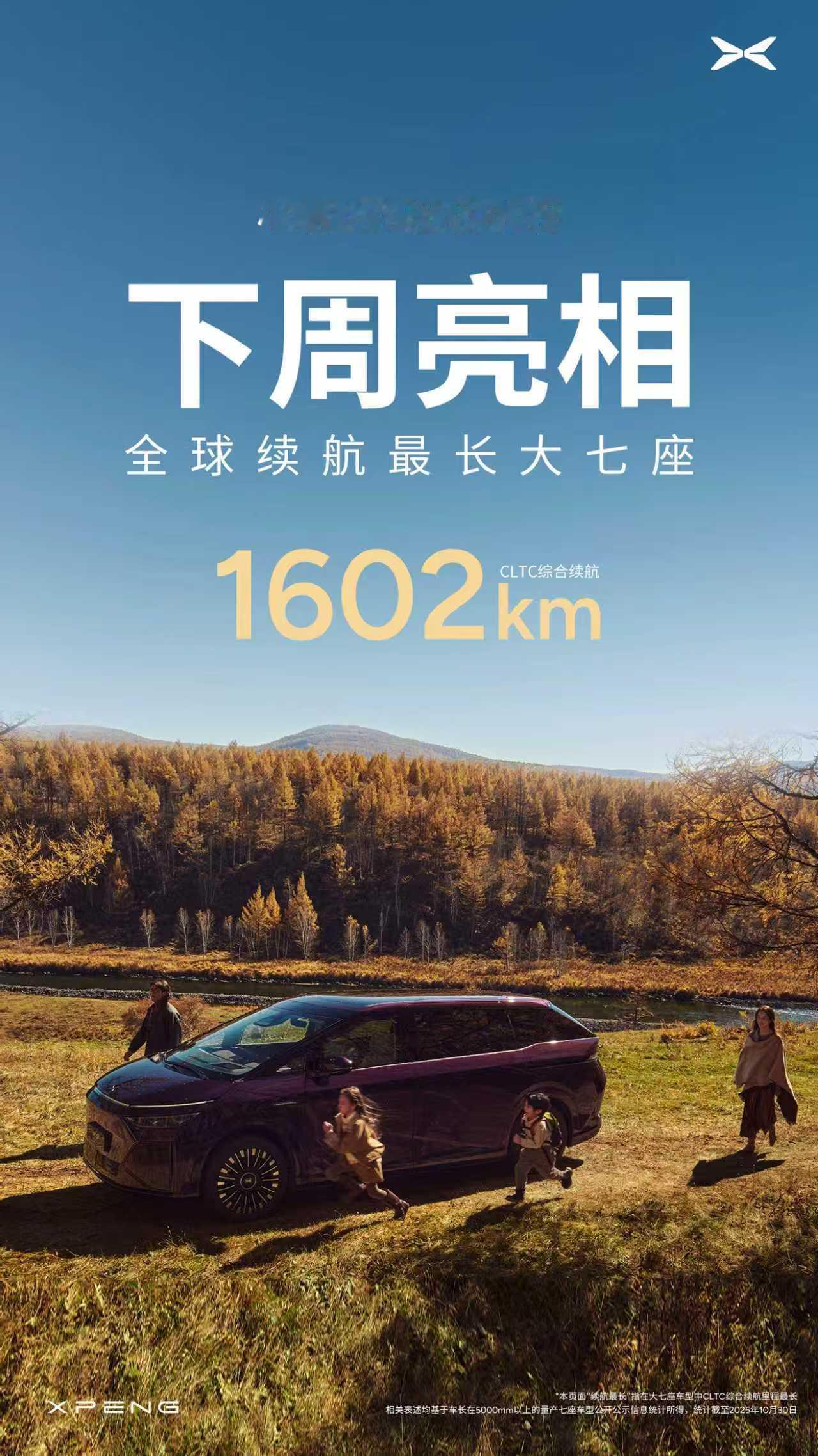 作为小鹏汽车面向全球的下一代增程产品,小鹏X9超级增程将于下周正式亮相。该车型是行业唯一搭载了"63.3度超快充磷酸铁锂大电池+60L大油箱",带来高达452km的纯电续航与1602km的综合续航表现,成为全球续航最长的大七座车型,敬请期待!