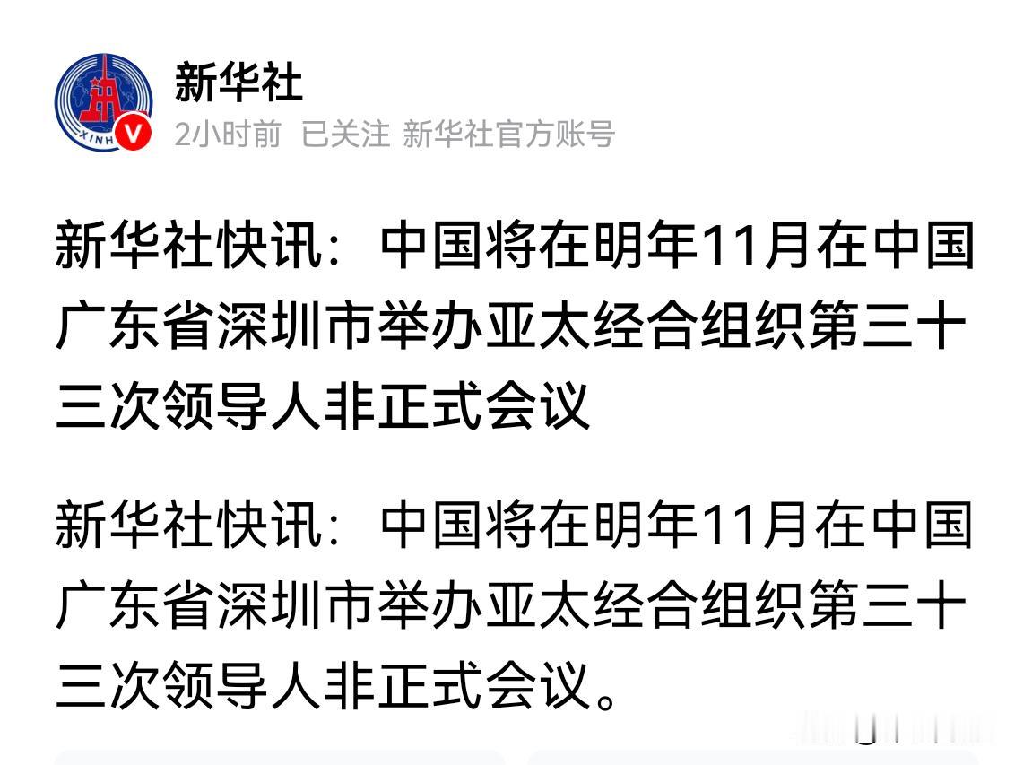 APEC,中国接力! 明年,深圳举办亚太经合组织峰会。 明年,深圳将成为全球焦点! 明年,深圳向全世界展示新科技! 明年,一定行![赞][赞][赞]