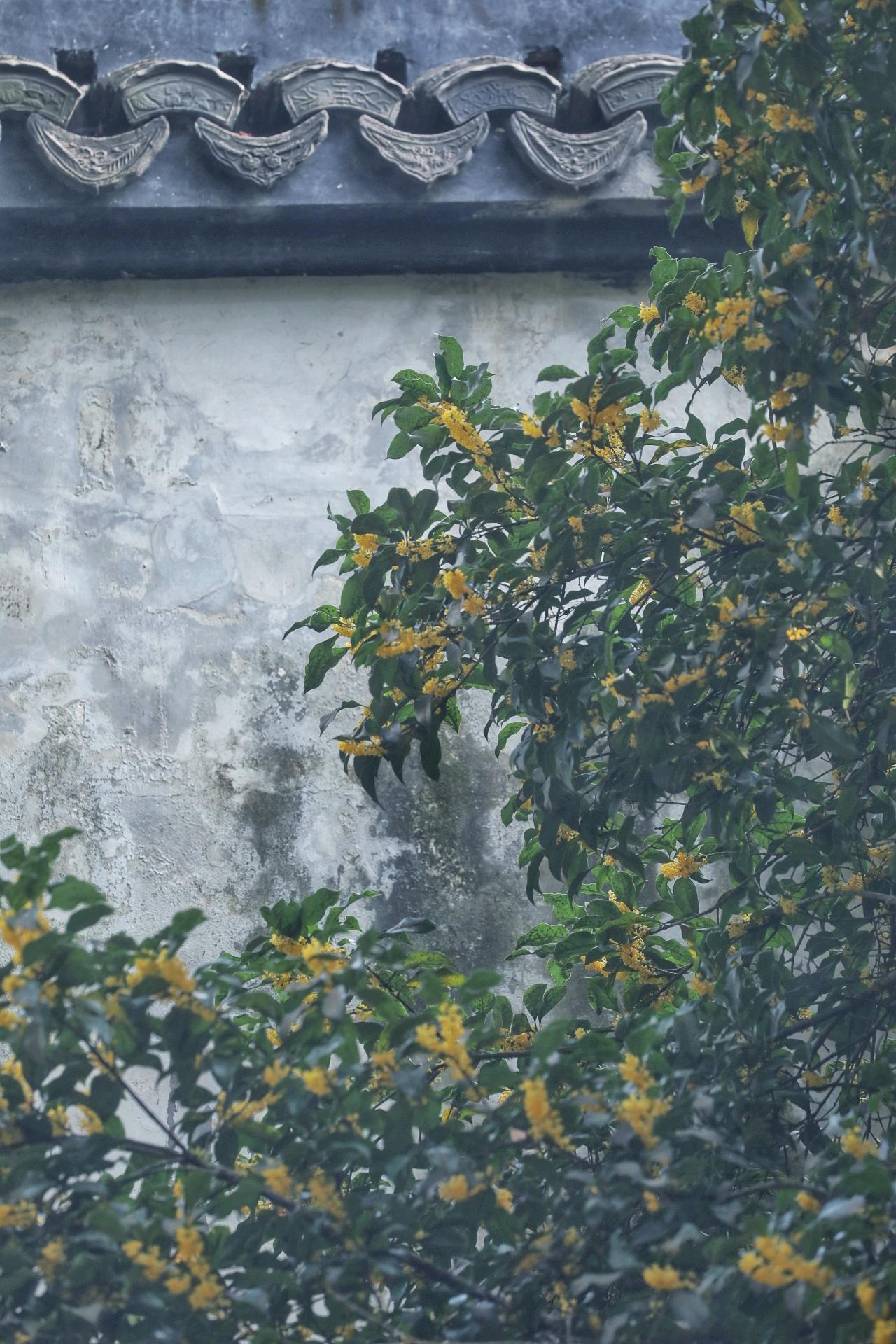 上海、杭州、苏州、湖州……都被桂香包裹! 日子不紧不慢,转眼霜降已经过去好多天。 推开院门,一股清凌凌的甜香就能漫过鼻尖。 江南的桂花,往年中秋刚过,花瓣就落得差不多了。 可今年秋天最后一个节气都到了,满树竟缀满了金黄的花蕊,细碎的花瓣挤在墨绿的叶片间,像被秋霜擦亮的小星星,风一吹,几片花瓣就轻轻巧巧地落在树下的青草上,安安静静的,可那香气却慢悠悠地弥漫了整座城市。 相较于往年国庆前后的盛花期,本年度桂花盛花期延迟约三四周。 尤为特别的是银桂、金桂、丹桂三大品种群实现同步绽放,这与“早银桂率先开放,金桂、丹桂再接力开放”的传统花期规律存在显著差异…… 秋风微凉,南浔古镇小莲庄的桂花树上,一粒粒花芽迫不及待地散发着阵阵甜香。 它们等待就是这一阵凉风,在这个恰到好处的温度,仅仅一夜之间满城金黄。 接下来,整个长三角地区将沉浸在一片芬芳中,大街小巷、园林古镇、郊野乡村,都已被那抹温柔绵密的香气轻轻笼罩。 此刻,我正在桂下喝茶,你来吗?