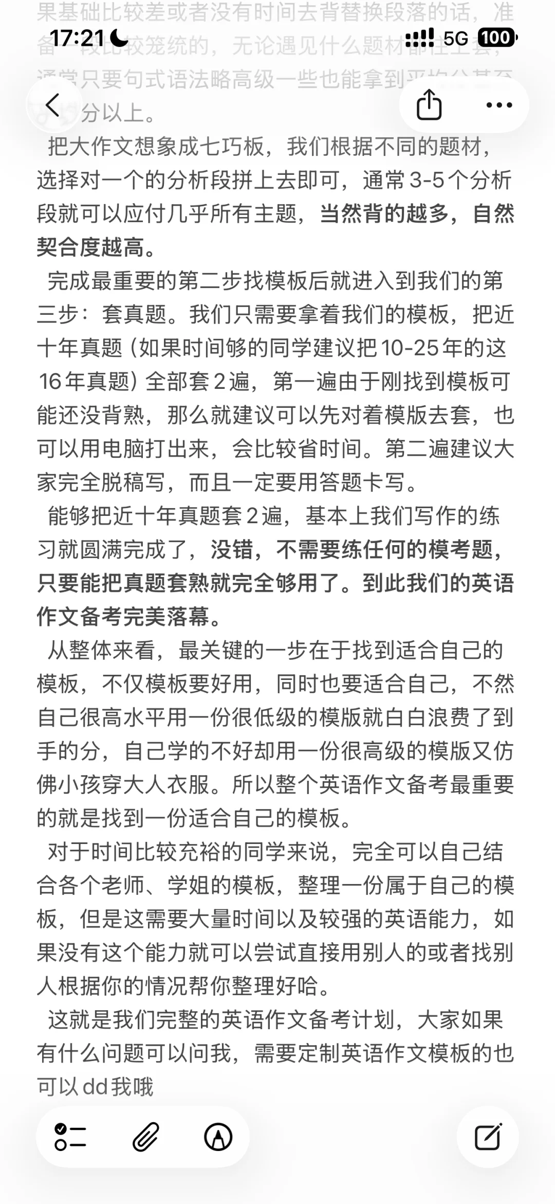 这就是我们完整的英语作文备考计划,大家如果有什么问题可以问我,需要定制英语作文模板的也可以dd我哦