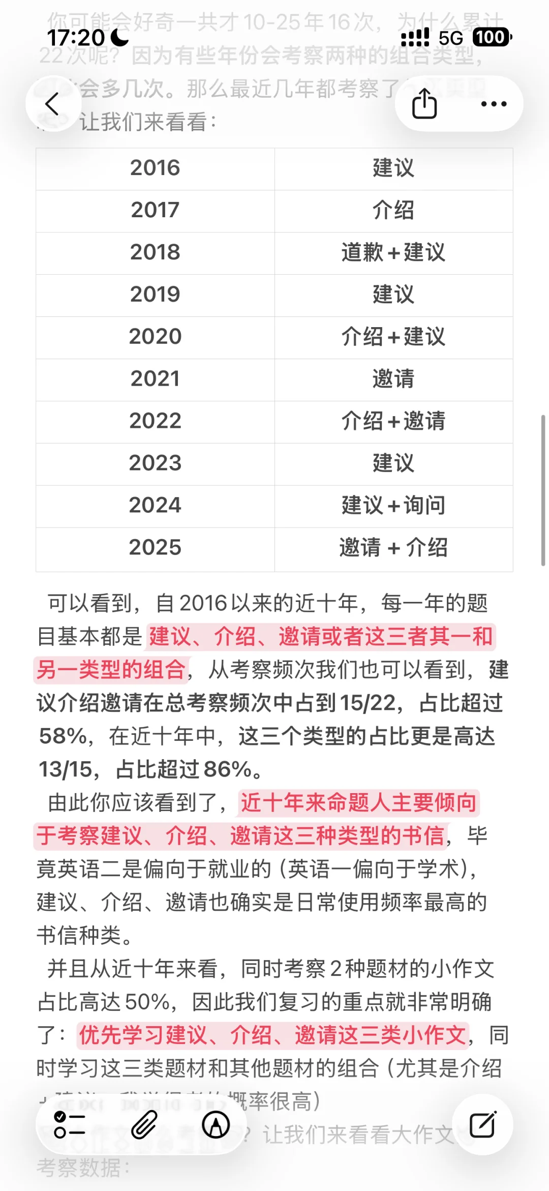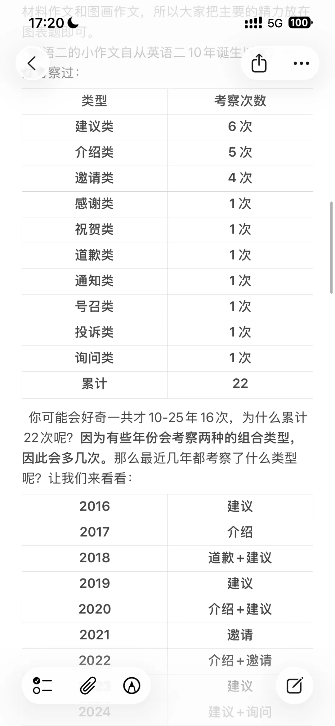 * 小作文模板:10类 → 必背3类(建议、介绍、邀请)