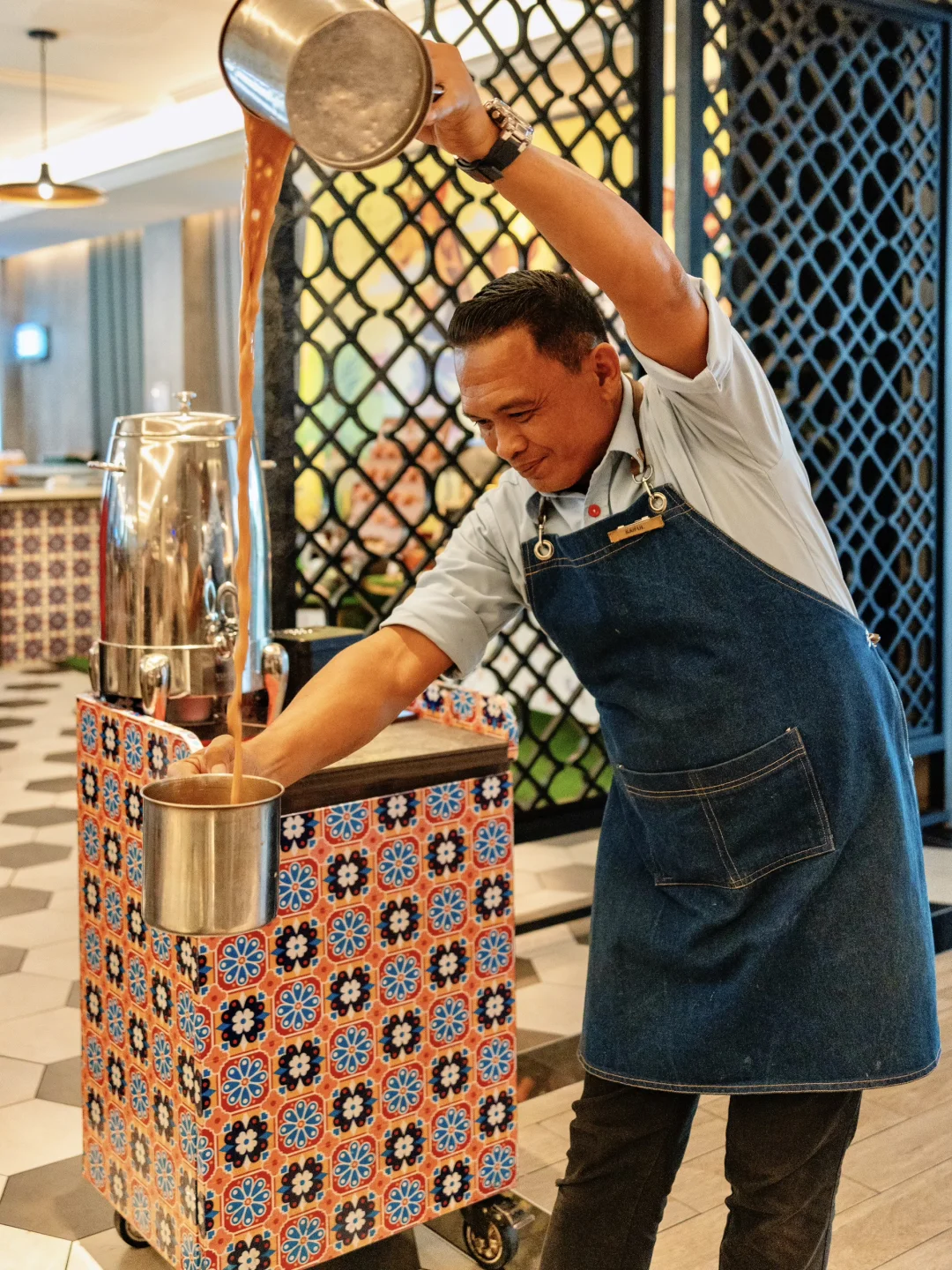 ▪️Spice Brasserie餐厅:这里连自助早餐都藏着惊喜!点上一杯拉茶,工作人员在桌旁现做,全程热情又贴心!配上一叠娘惹特色点心,开启元气满满的一天!除了自助早餐,这里还提供丰富的自助餐和单点菜单,涵盖了丰富的海鲜和马来西亚本地特色菜