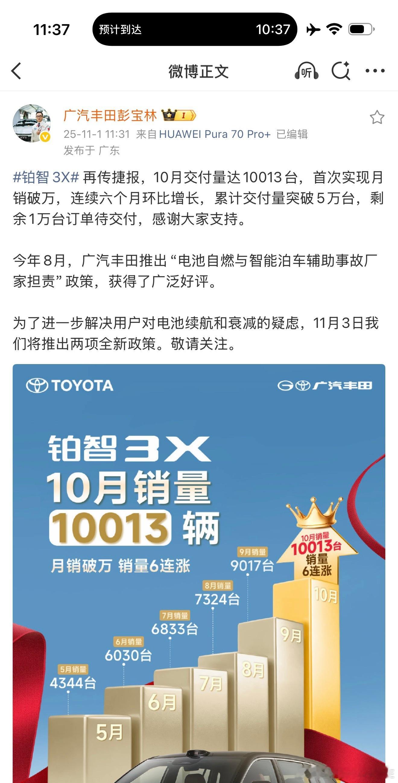 广丰即将推出电车电池新政策铂智3X月销量破万在刚刚过去的10月,广汽丰田铂智3X销量首次突破万辆大关,以10,013台的交付量实现了令人瞩目的环比“六连涨”。这款车型能持续热销,其根本在于以扎实的产品力与真诚的用户服务,精准回应了市场的核心需求。
