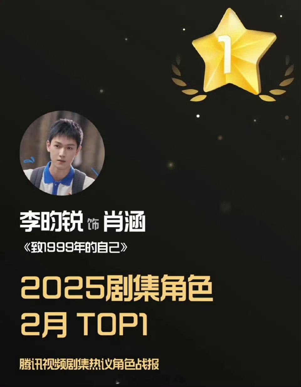 李昀锐的林晏和肖涵都拿到了月榜第一也是腾讯2025年唯一有两个角色第一的演员