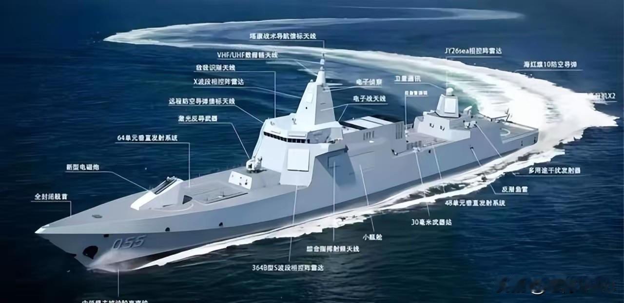第14艘055大驱2025年10月下旬在大连船厂下水,第二批次6艘全齐,共14艘。055型1.3万吨,112垂发单元,配相控阵雷达及多种导弹。未来会造改进型055B(全电推进、氮化镓雷达等),满足航母编队需求。