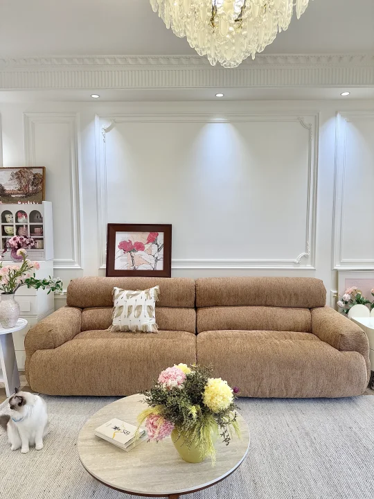 沙发表面是双色交织雪尼尔面料,视觉斑斓高级