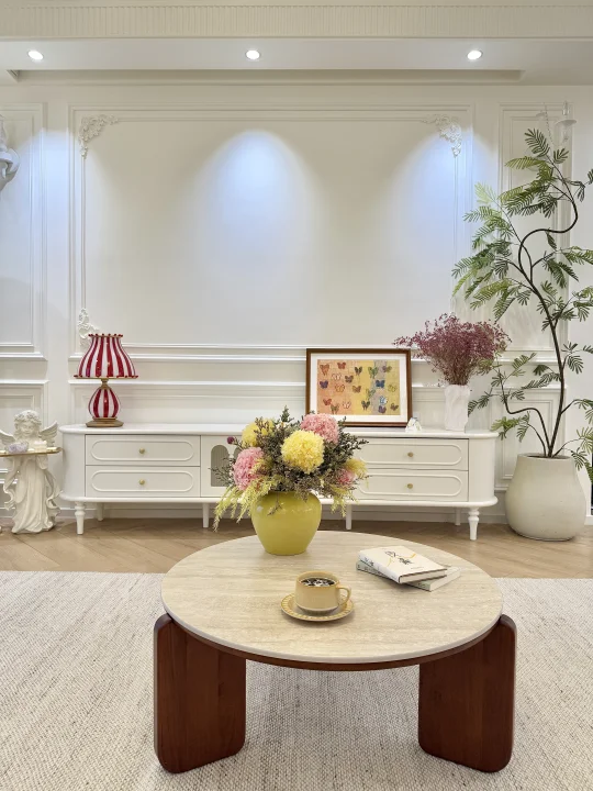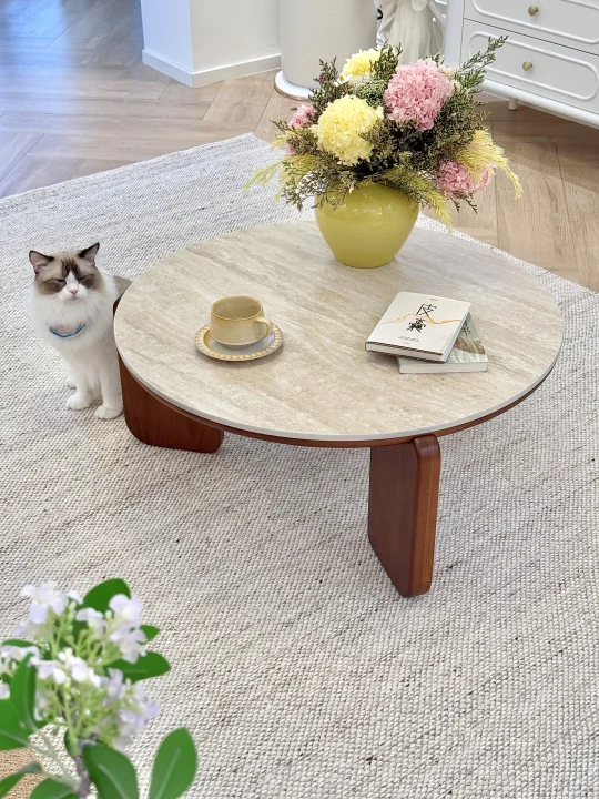 实木桌腿+洞石岩板把复古和高级融合的刚刚好