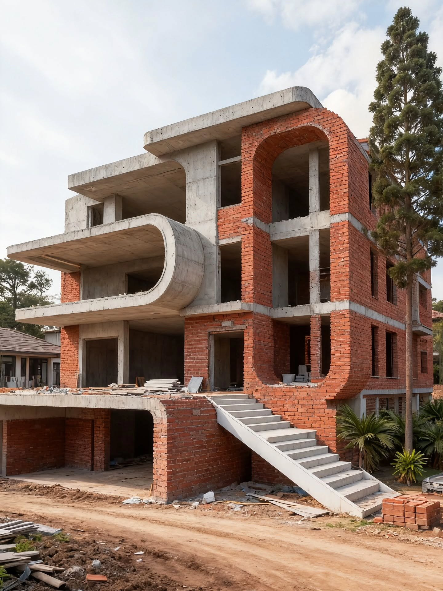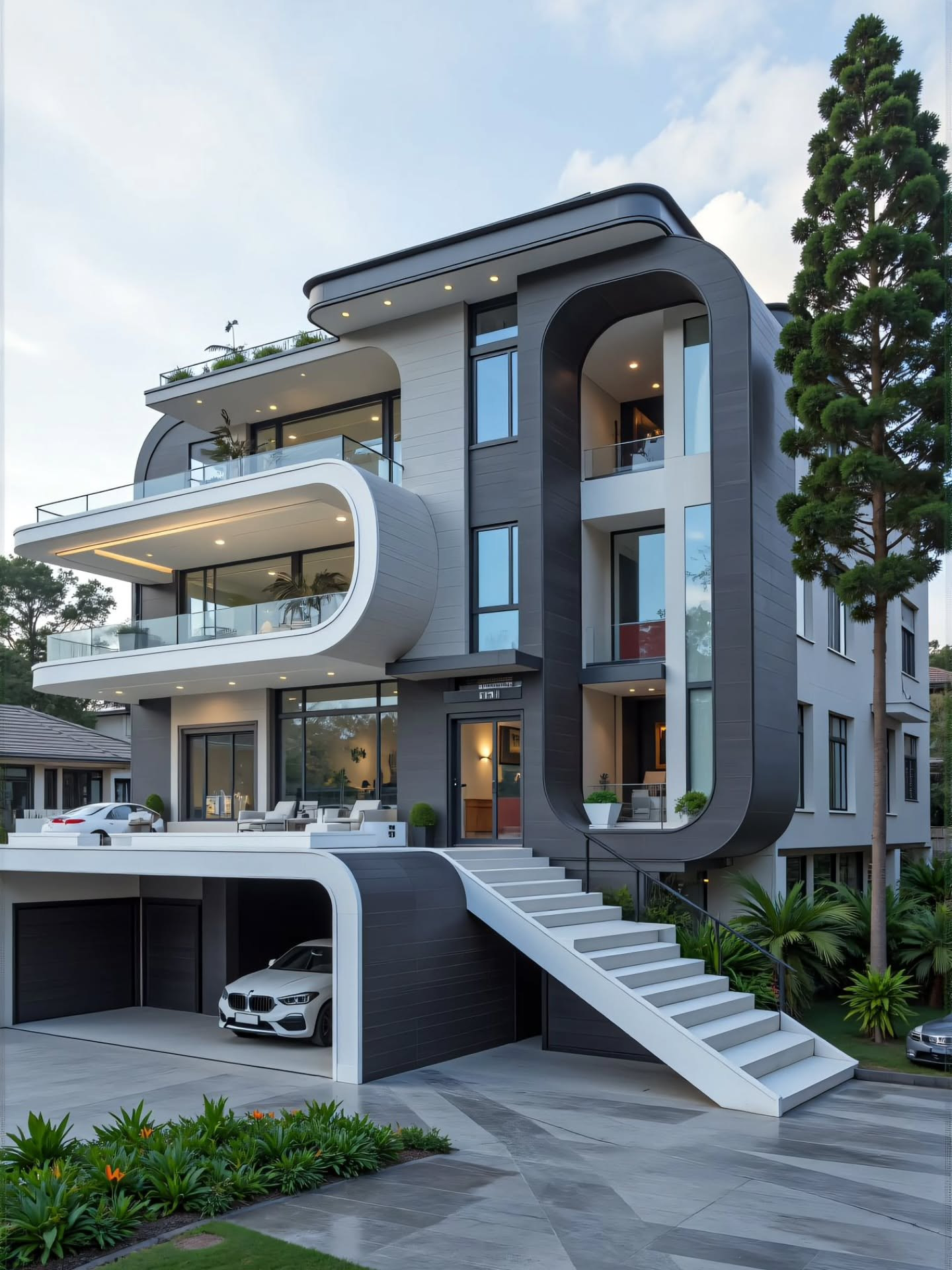 在弧形悬挑露台+双层通高门厅! 在树影婆娑,天光云影里!